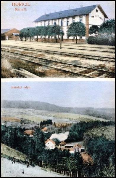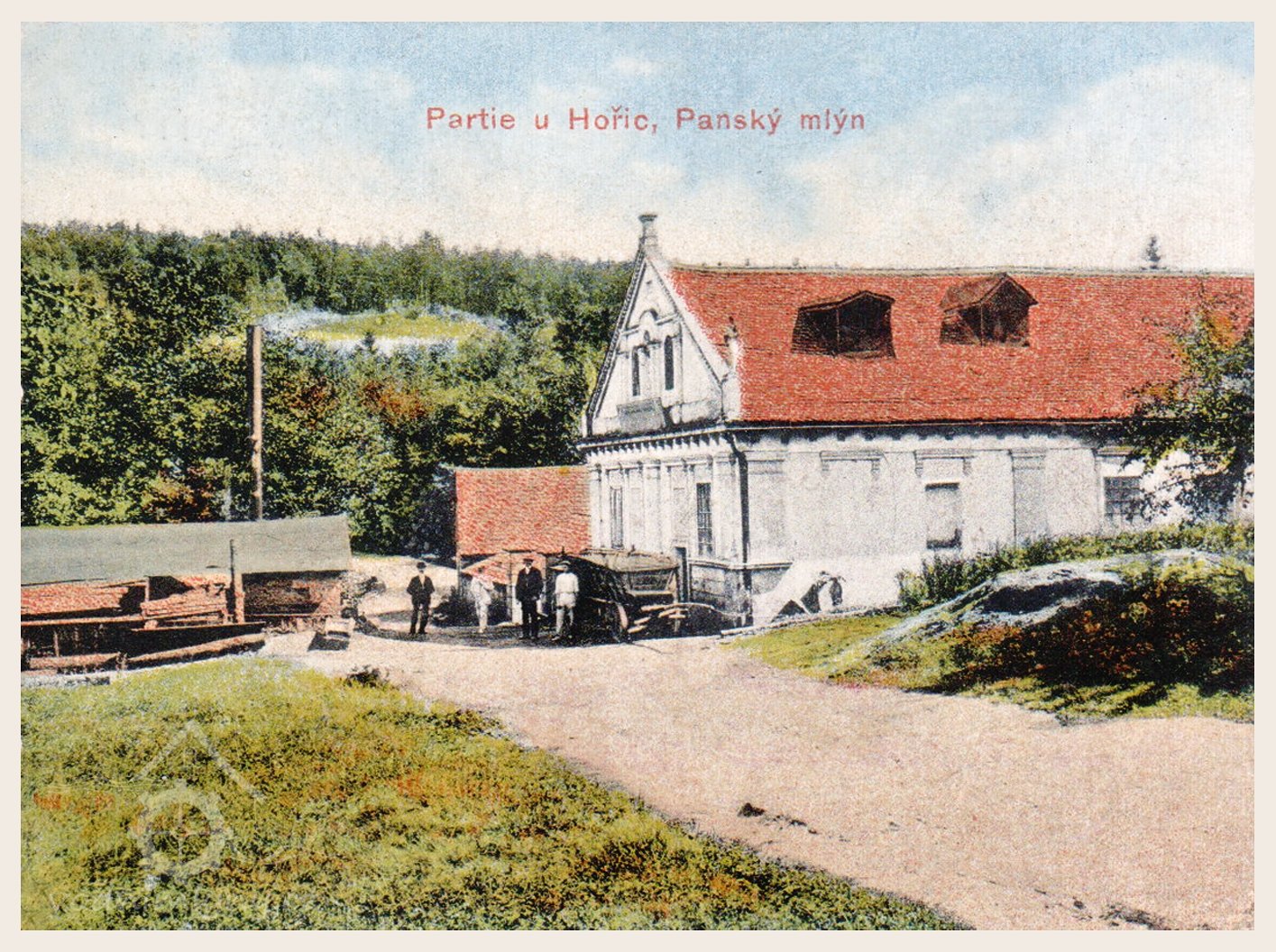 Panský mlýn je zmiňován již v inventáři panství Smiřických z roku 1611. Mlýn zůstával ve vlastnictví majitel hořického panství až do roku 1748, kdy byl prodán za 1500 zlatých Josefu Rykrovi z Hořic. Nový majitel se v kupní smlouvě mimo jiné zavázal semlít určité množství obilí pro vrchnostenské úředníky a dvorskou čeleď. Od nejstarších dob byli k tomuto mlýnu přiděleni „mleči“ – hořičtí pekaři a obyvatelé vsí Doubrava, Dobeš a Chvalina, kteří měli být obslouženi „spravedlivě a bez šizuňku“. Nový mlynář se dále zavázal, že nebude kupovat a mlít kradené obilí, nebude chránit zloděje ani přechovávat bludné kacíře.