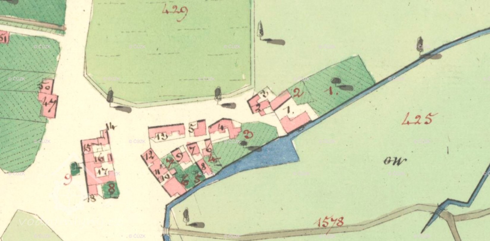 Jako mlýn vyznačen na Pozemkovém katastru (RŠ)