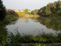 cca. 500m SSV centra obce pod hrází rybníka Kačer