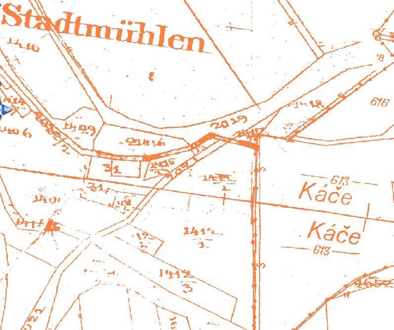 Historický název původně nalezen na územní identifikaci NPU https://geoportal.npu.cz/webappbuilder/apps/31/, terénní průzkum/KM potvrdily skutečné umístění bývalého mlýna.