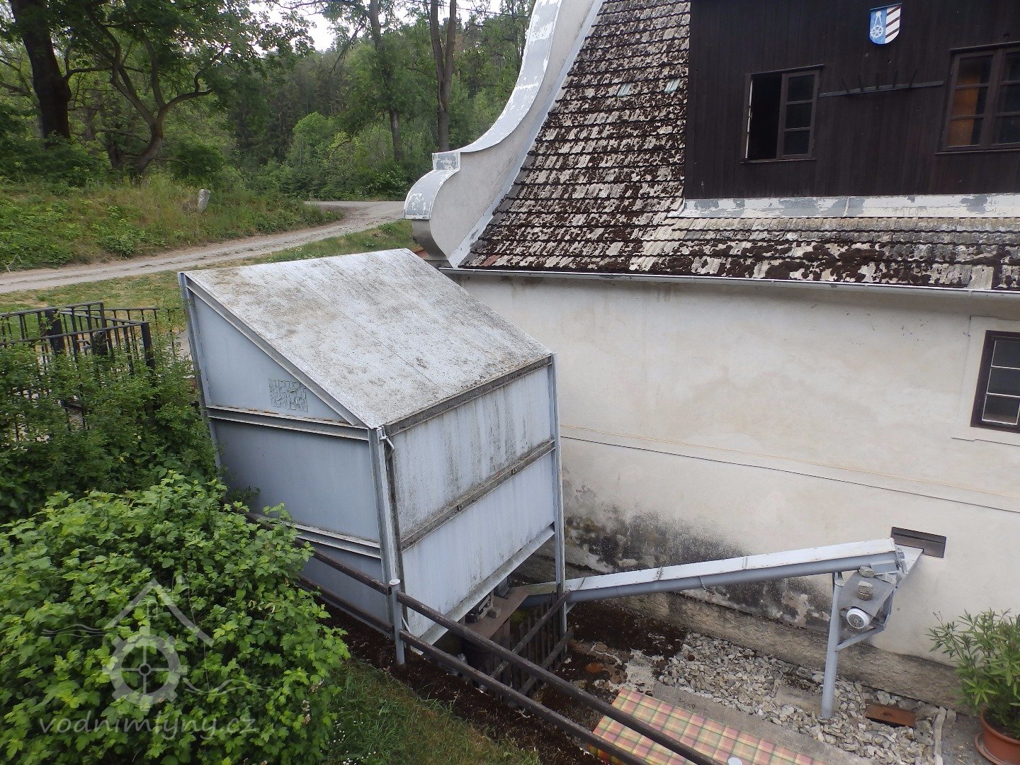 Mlýn s turbínou, který vyrábí elektřinu a mele