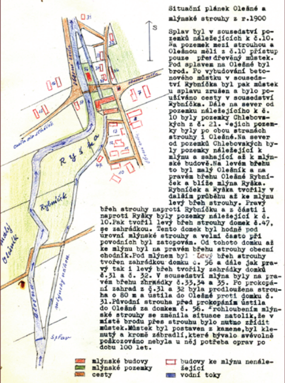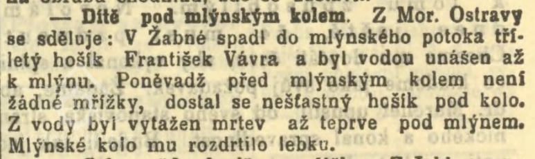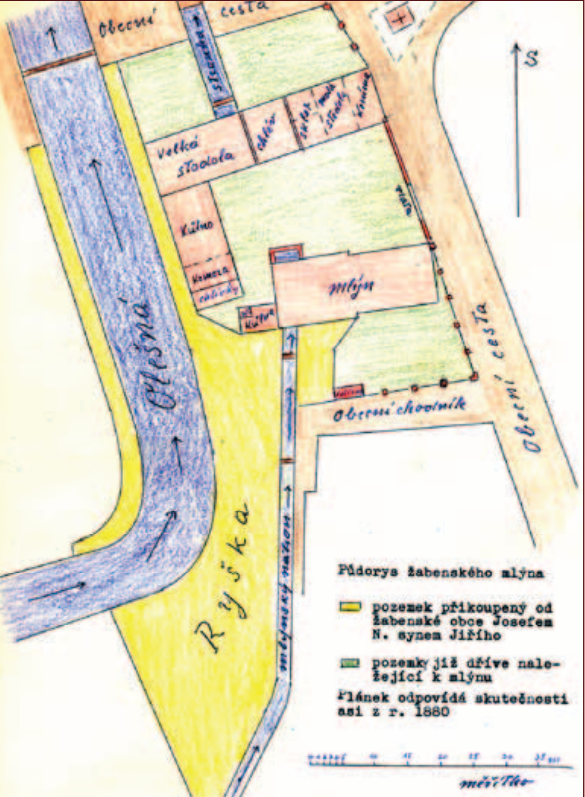 Vrchnostenským úřademspojeného panství Paskov a Řepiště, jakožto jednací instancí po zanechání posledního pořízení žabenského mlynáře Jiřího Neussara , zemřelého 9. února 1834 byl zanechaný mlýn pod č. 14 i s příslušnými pozemky ve výměře 2 jochů 1544 a 5/6 sáhů pod Top. Č. 40, 41, 116, 142, 143 a 200 v zákonné veně 500 fr Cmce se zřetelem na závazky z prodeje pozemků, které kupem od vrchnosti byly převzaty jeho otcem, zejména rybníky Velký a Malý Olešník pod Top. Č. 225 a 226 ve výměře 5 jochů a 716 sáhů s přihlédnutím na prodej z 11tého ledna 1810, zvaný Kamenec pod Top. Č. 111 b/ve výměru 1 jochů orné půdy, pak Zádvoř pod Top. Č. 228 b/ve výměře 3 jochů a 530 sáhů se zřetelem na splnění závazků dvou kupů z 11tého dubna 1825 v jednotné zákonné ceně 500 fr Kmce. Dohromady v ceně 1.000 fr. Kmce. Slovy: jedentisíc zlatých v konvenční měně dědici podle závěti Josefu Neussarovi do vlastnictví pod podmínkou odpovídající, že je to i vůle zůstavitele, aby pozůstalá vdova Terezie měla právo obhospodařování těchto nemovitostí, tak dlouho, pokud bude žít a teprve po její smrti má se stát jeho plným majetkem. Totéž má nastat, kdyby hospodářství nechtěla vést, nebo nemohla. V tom případě a po převzetí dotyčného mlýna s příslušenstvíma uvedenými polnostmi má Josef Neussar dodržet zákonně určenou kupní cenu bezúročně až do převzetí a to následujícím způsobem zaplatit: