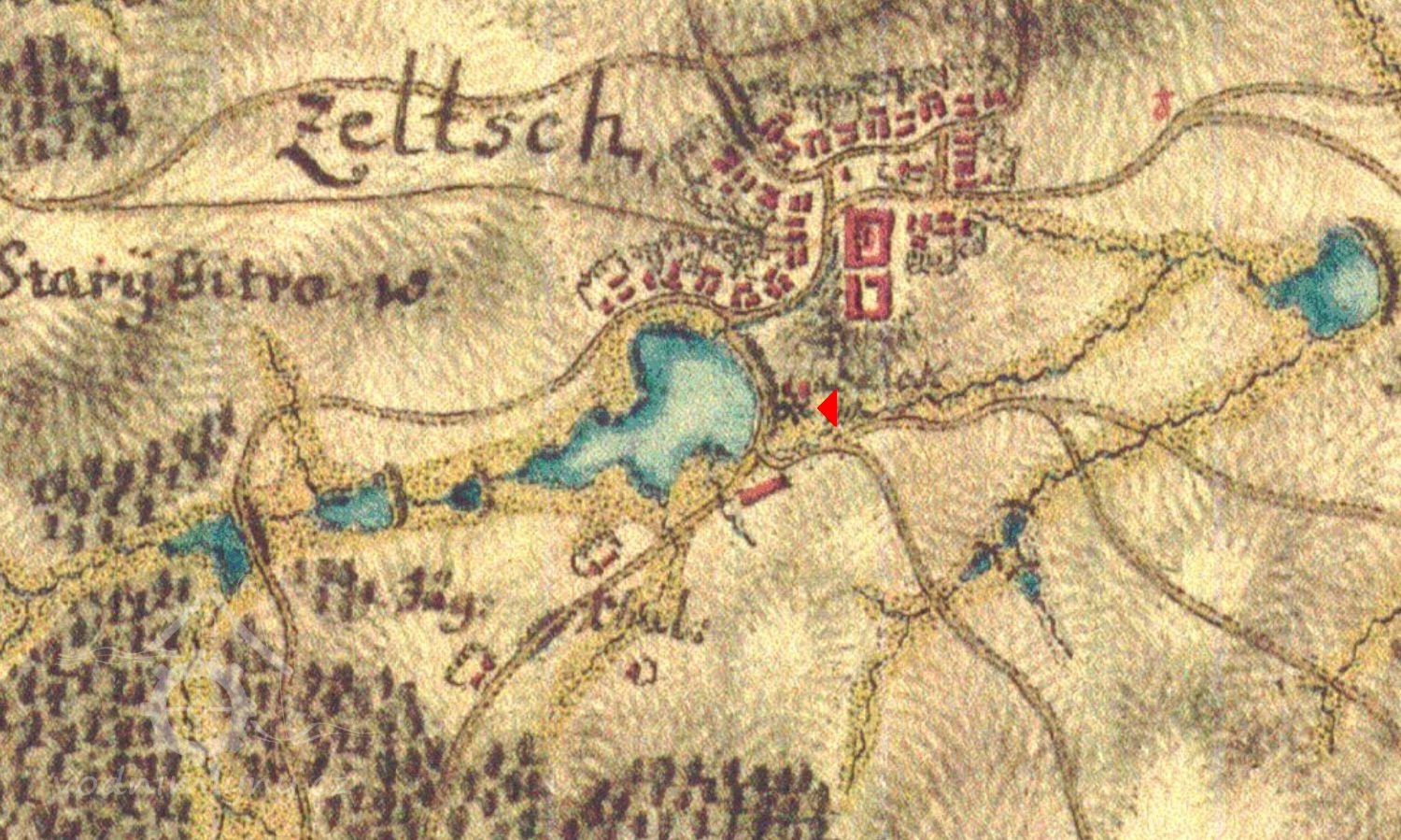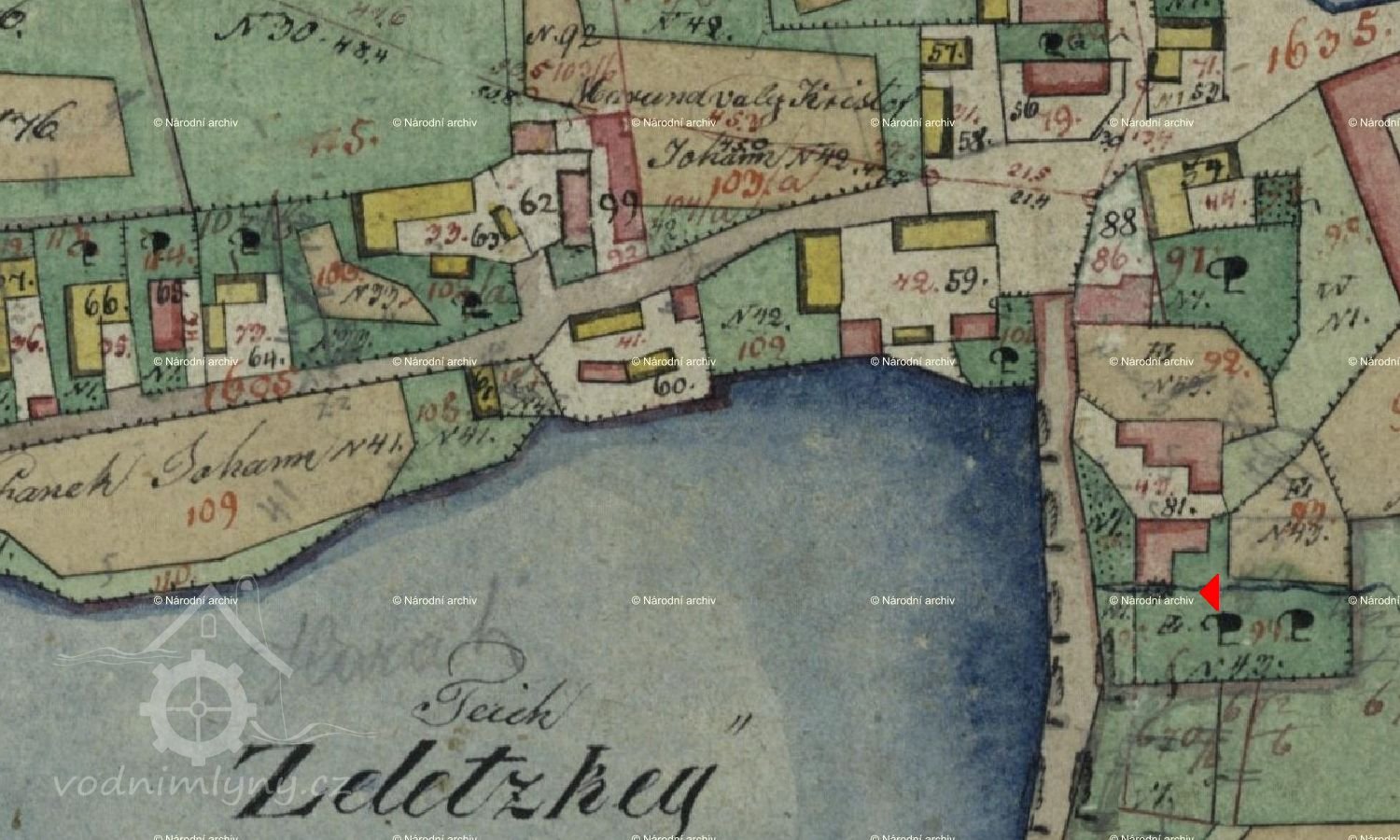...Ještě bych poznamenal k mlýnům: tzv. „Vodní kniha“ uložená v táborském okresním archívu, založená v roce 1850 uvádí vody a vodní mlýn v Želči čp.43. Je u něho uveden popis vodního kola, žlabu, průměr mlýnských kamenů (79 cm). U kola je napsáno: „Jest dřevěné, na horní vodu zařízené“. Roku 1879 je připsáno, že byl mlýnský stroj zrušen.