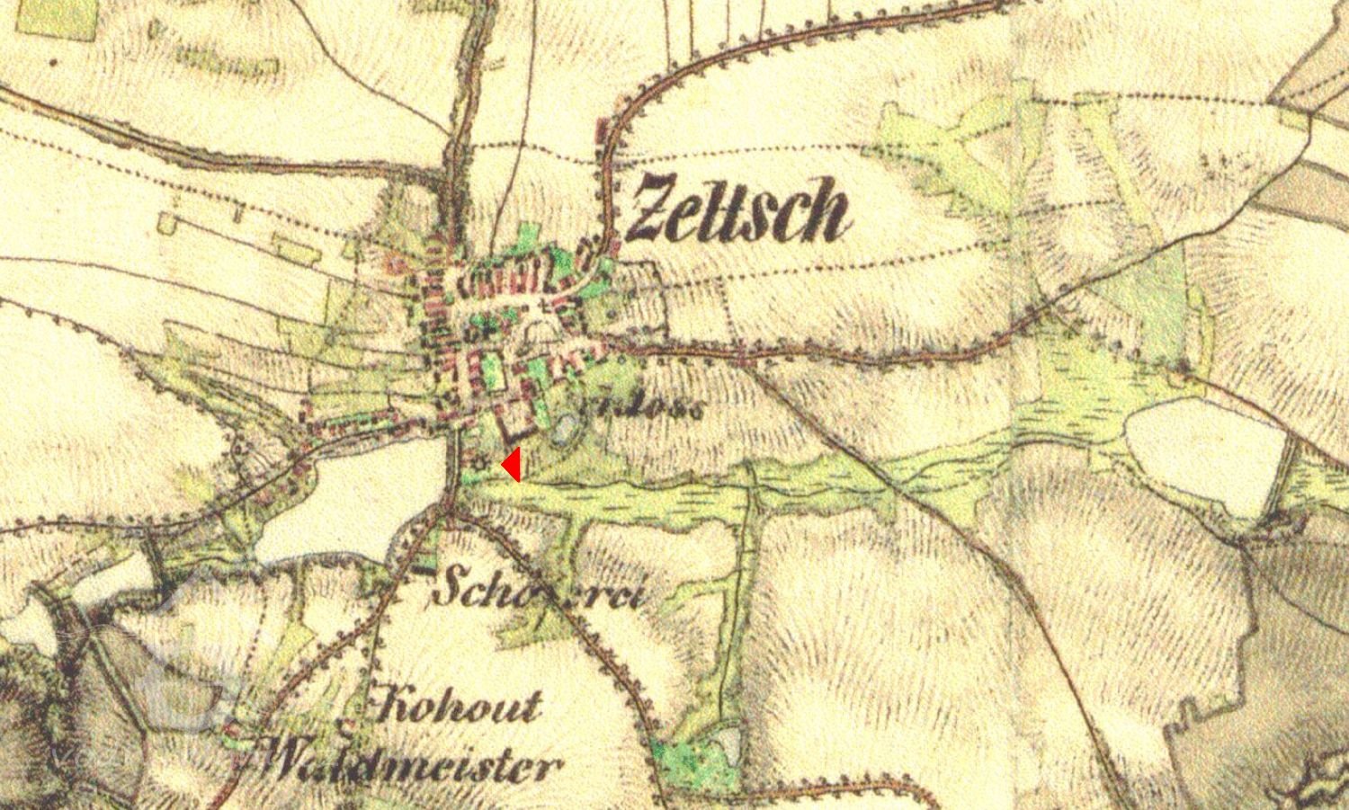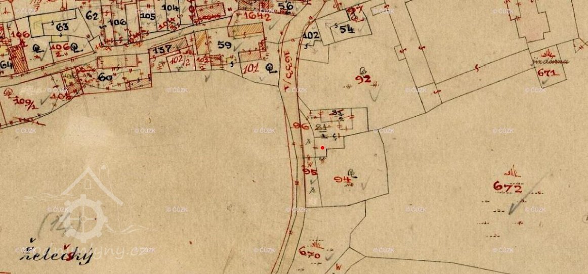 ...K úplnosti historie obce budiž zde poznamenáno i to, co se vypravuje o jednotlivých místech v okolí obce. Pod rybníkem zvaným Želečským, kde se nyní říká ve mlejnku, býval malý mlýn, jehož zbytky doposud ukazují, jak takové malé staré české mlýny vypadaly...