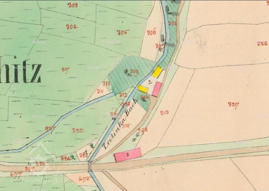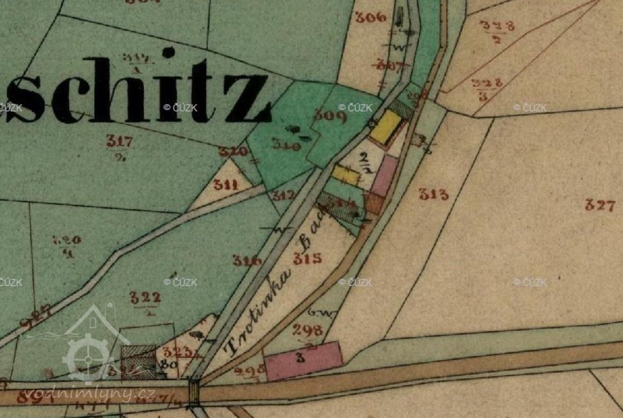 Mlýn držel v r. 1506 a 1521 mlynář Dušek.