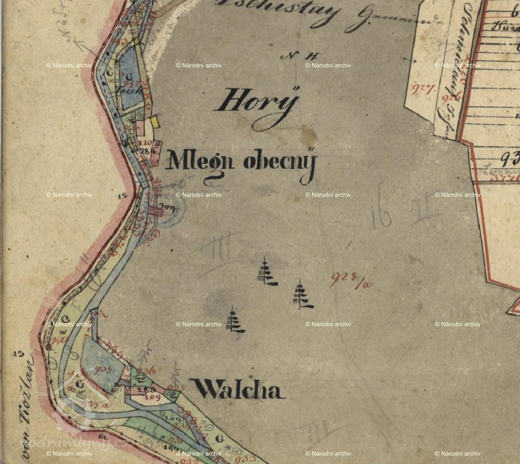 1828 postavena pila, Šrajer se za to zavázal obci odvádět ročně 1 a 1/4 strychu žita a rozřezat 15 klád.