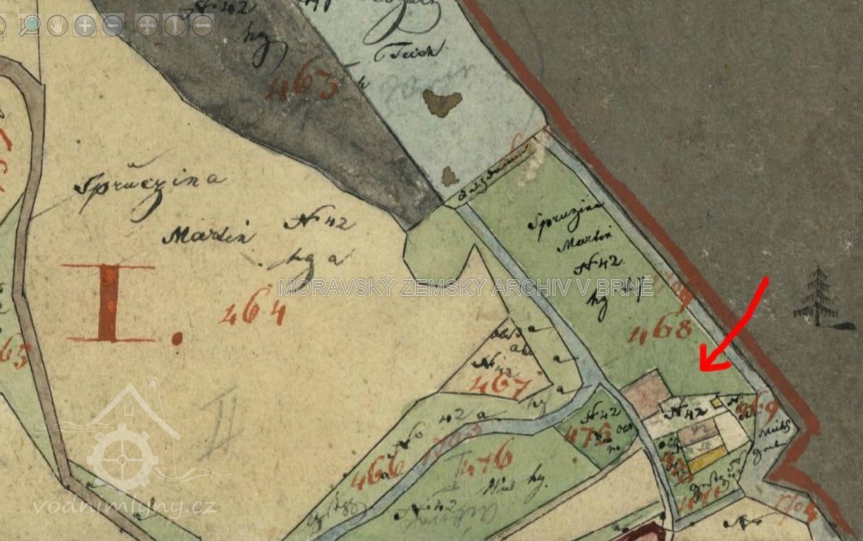 V roce 1825 je mlynářem Martin Spružina (Indikační skica+matrika).