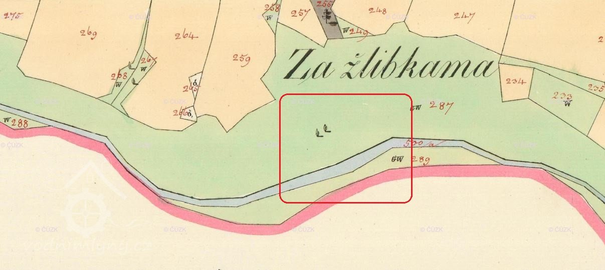 V Lánových rejstřících z 2. pol. 17. století se o mlýnu v Touboři mlčí, mapy I. vojenského mapování61 jej taktéž nezachycují a ani na mapách císařských otisků62 z roku 1826 se objekt neobjevuje. Byl vybudován zřejmě až po polovině 19. století.