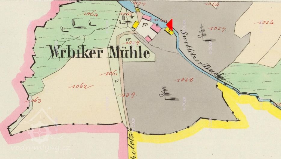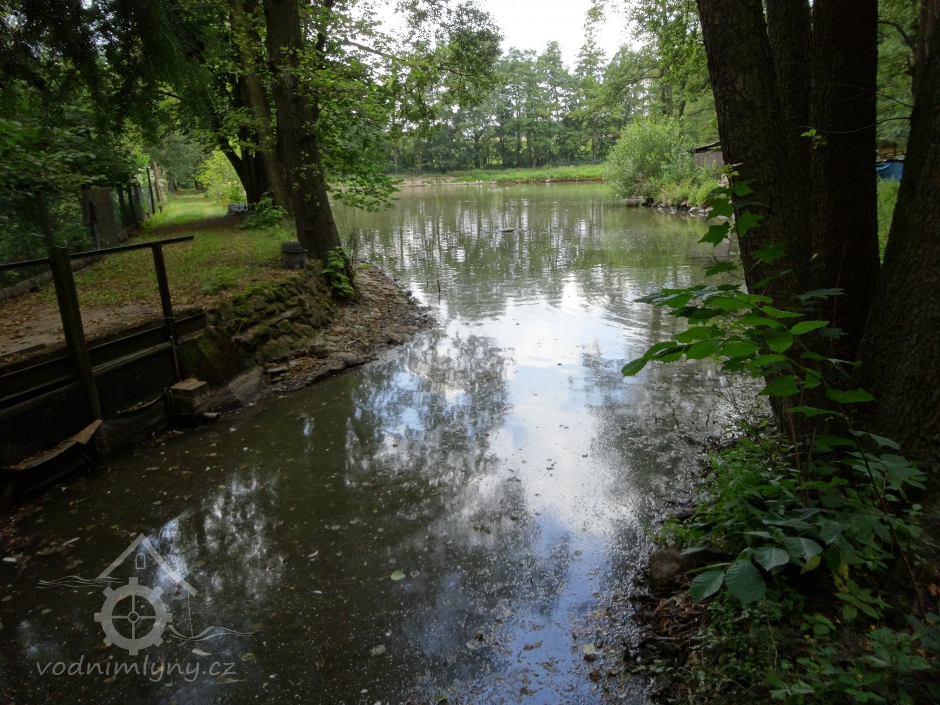 ...Na konci náhona jsou zřízeny vantroky 1,29 m široké a 0,59 m vysoké v délce 4,75 m. Pokračováním těchto starých vantrok je dřevěný žlab na počátku 94 cm a na konci 67 cm široky. Tímto žlabem pouští se voda do kolmé dřevěné roury jejíž půdorys je 50x80cm. Roura je ode dna 4 m vysoká, dole zkosená. Zkosený otvor je zabedněn deskami a až na část 5 cm čirokou se dá uzavřít dvoudílným stavítkem 50 a 30 cm širokým. Těmito stavítky se pouští voda na tzv. Peltonovo kolo.