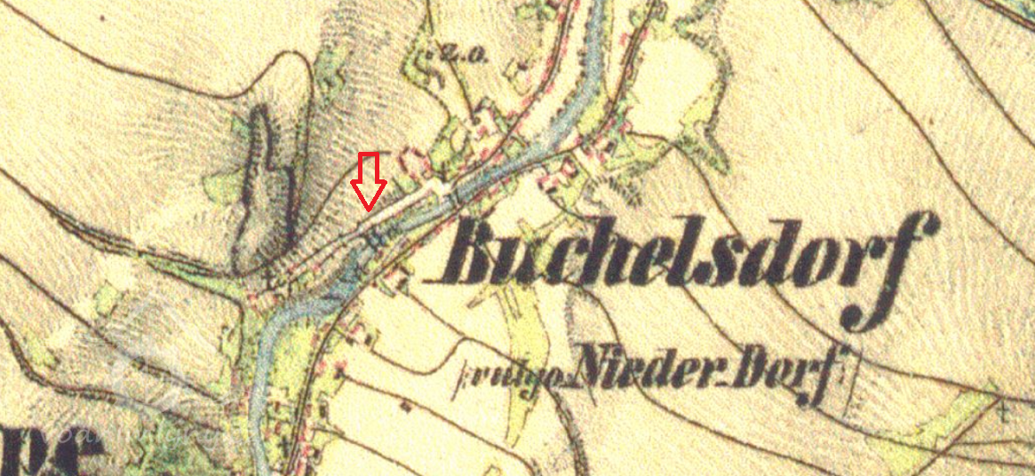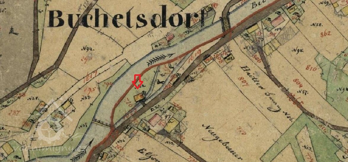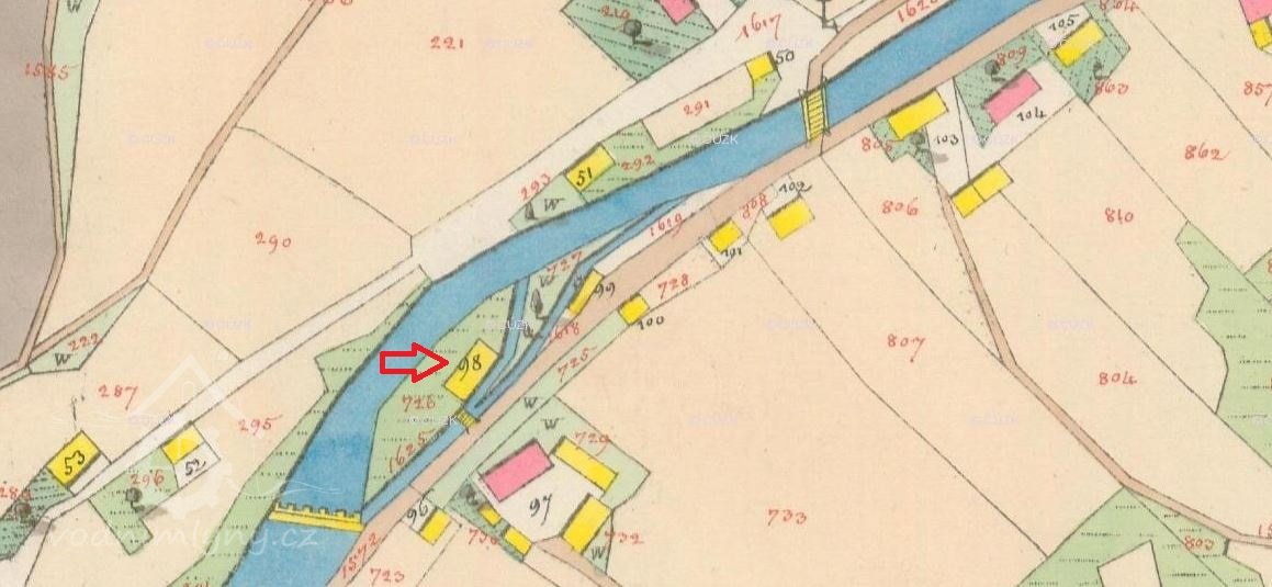 Mlýn je zachycen na mapě I.voj. mapování.