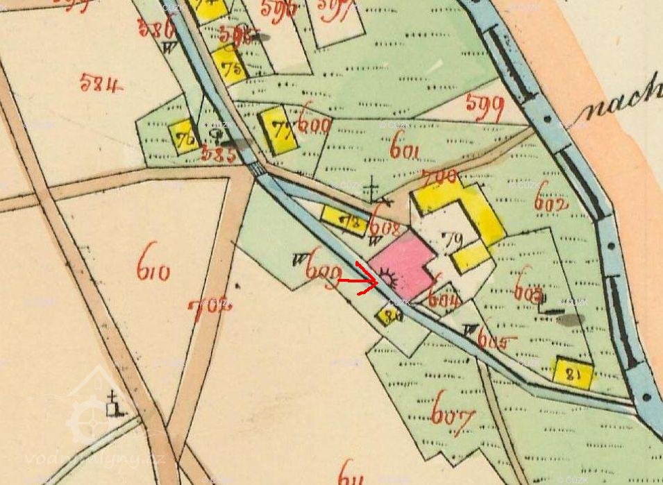Na ortofotomapě z 50. let 20. století je ještě viditelná obytná budova a mlýnice.