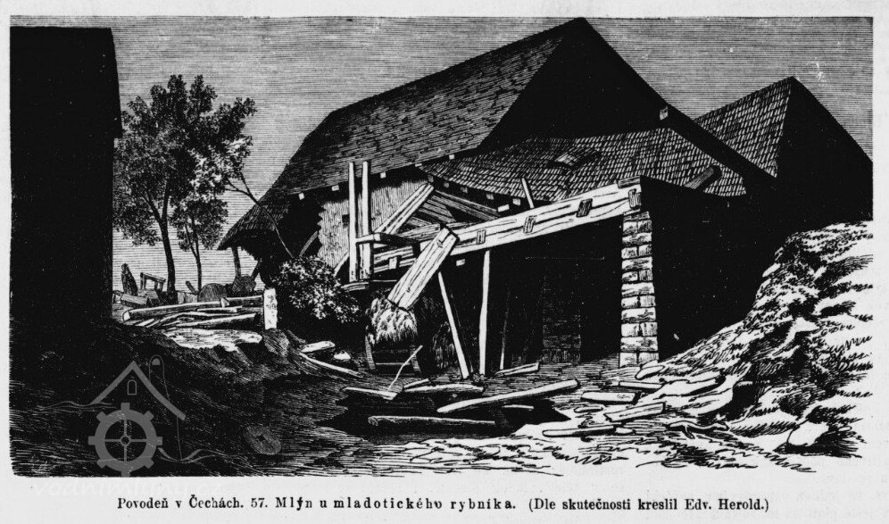 R. 1549 strhl příval vody velký rybník pod Mladoticemi a voda strhla i mlýn. Opat pak nechal postavit nový mlýn přímo ve vsi (Patejdlův mlýn).