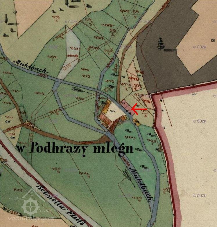 1549 mlynář Marek, plaský klášter mu prodal polnosti pod rybníkem za 45 kop a chalupu pod hrází, aby si je opravil, z všeho bude ročně platit půldruhé kopy. V řece pod mlýnem má mlynář právo lovit ryby, ale jen pro svou potřebu, zároveň ale musí řeku hlídat před pytláky. Pokud bude chtít lovit ryby i v rybníku, budou řeholníci moci v jeho chalupě svobodně pobývat.