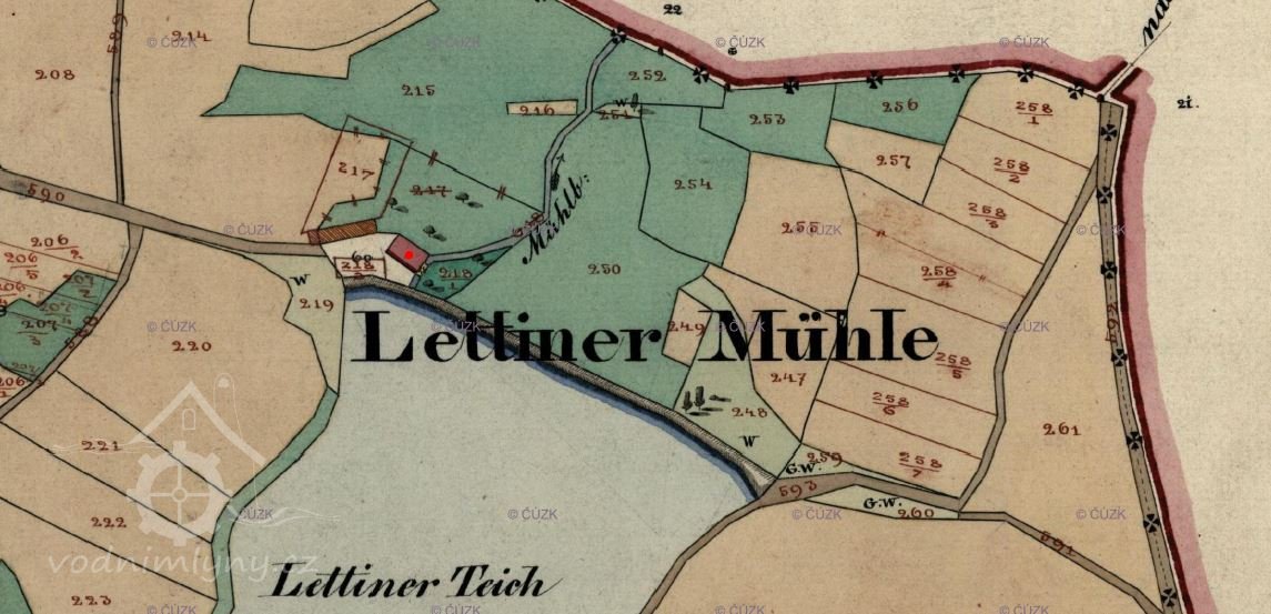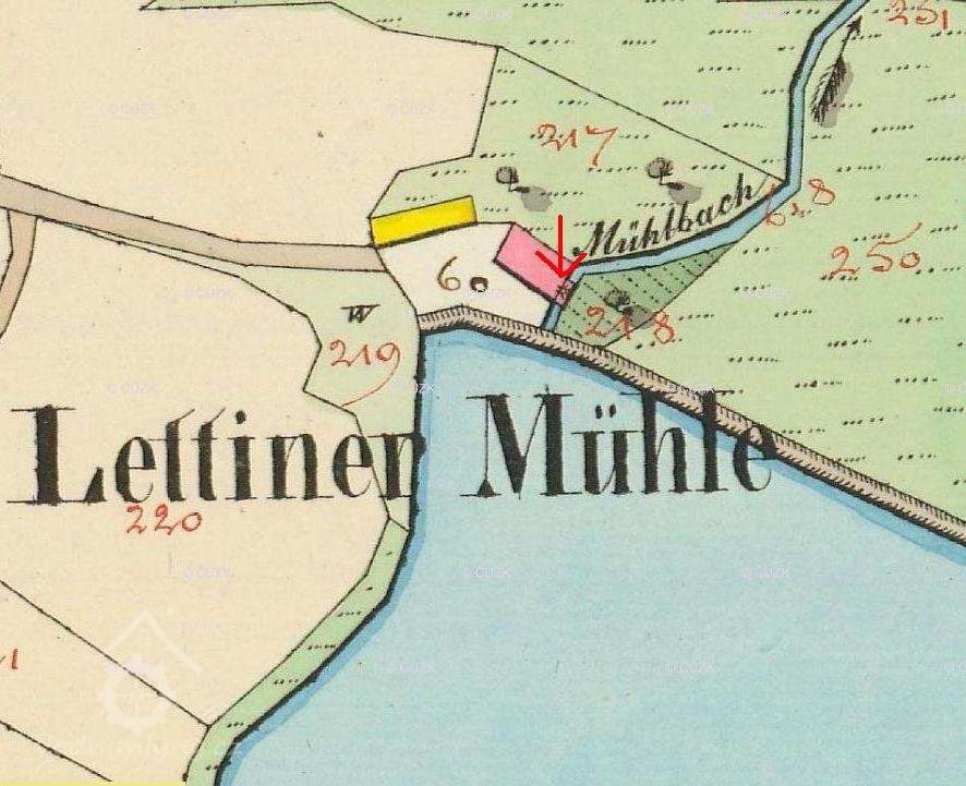 Uvnitř mlýnského stavení bývala pěkná mlýnice s podlahou z dubových fošen. Z ní se scházelo dolů po kamenných schodech, kde pod mlýnicí tekl Letinský potok.