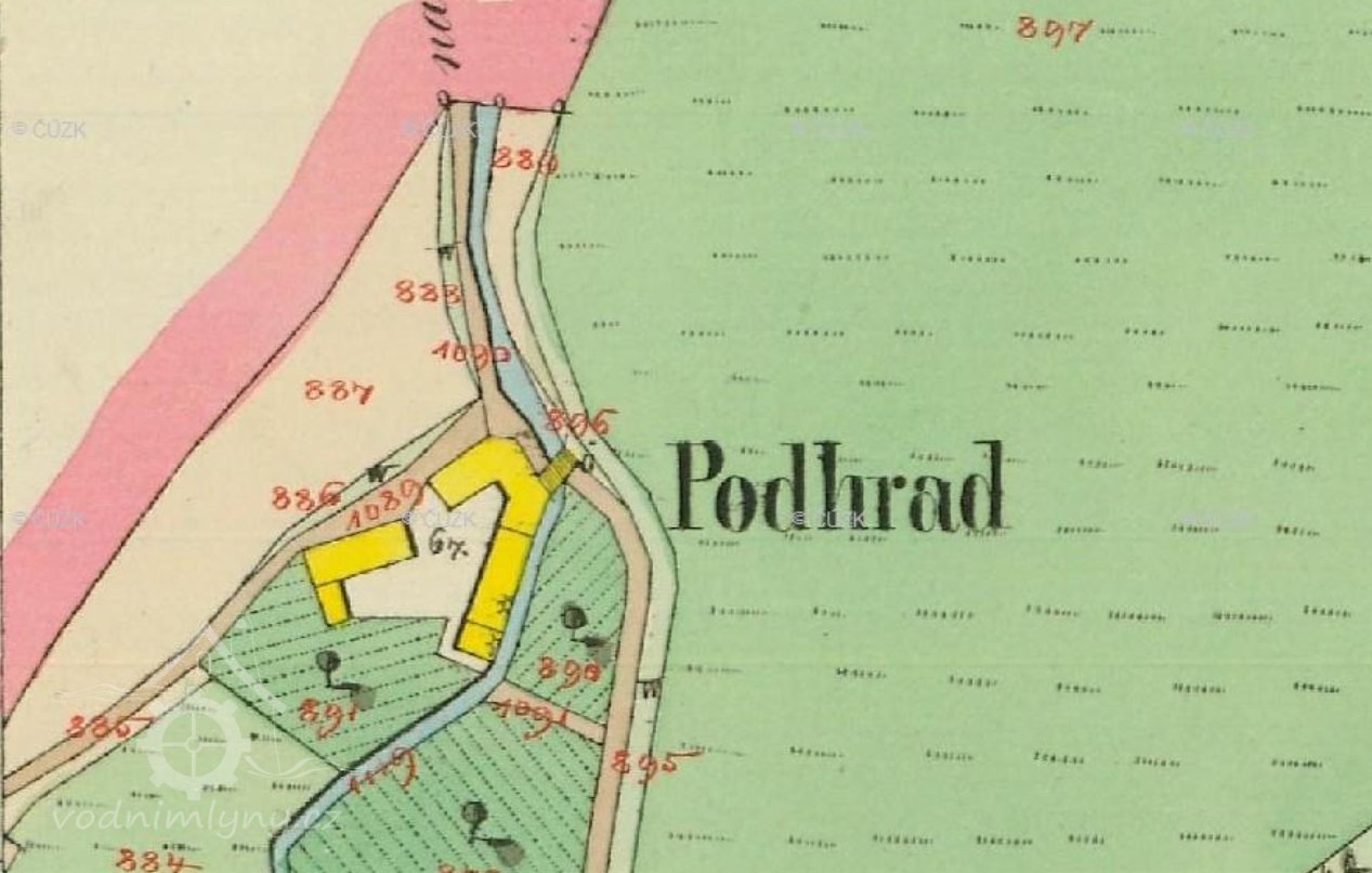 Dříve než se pustíme do popisování oněch neblahých událostí, si ještě jednou prohlédněte fotografii. Je na ní dobře patrné jak byl Podhrad v té době vystavěný. Bílá budova v levé části je postavena do tvaru L a byly v ní chlévy, maštale, kolny a obytná část vejminku s jedním pokojem v patře. Tato budova byla právě dokončenou novostavbou a vystavěl ji František. Od té doby se tam říklalo “V novém”. Také si povšimněte, že kolna přistavěná k mlýnu byla vyšší než stará stodola.