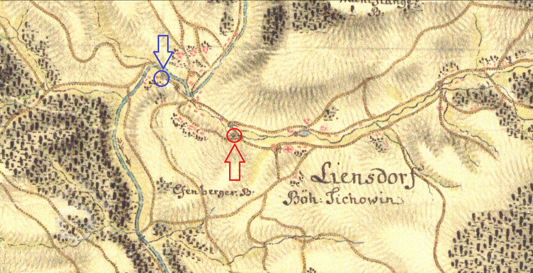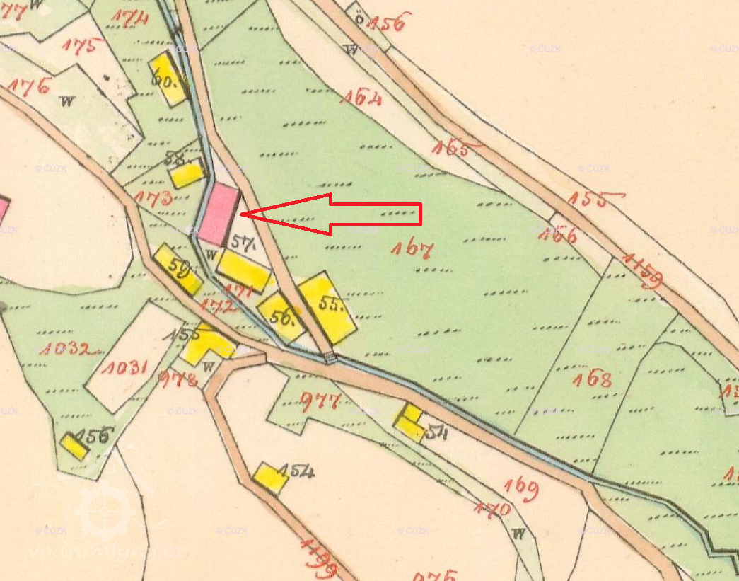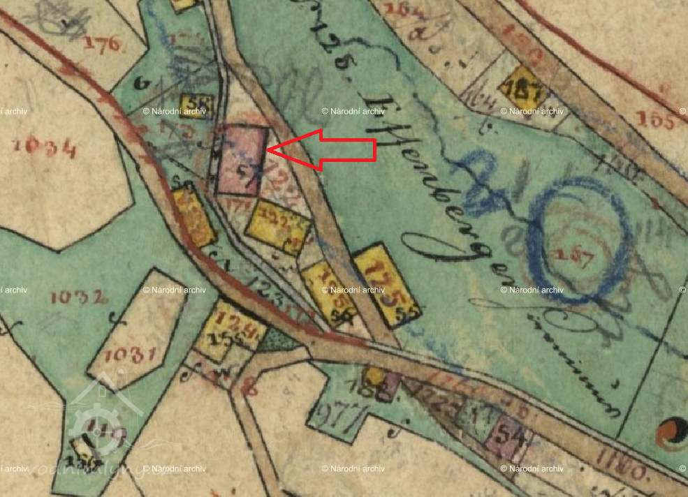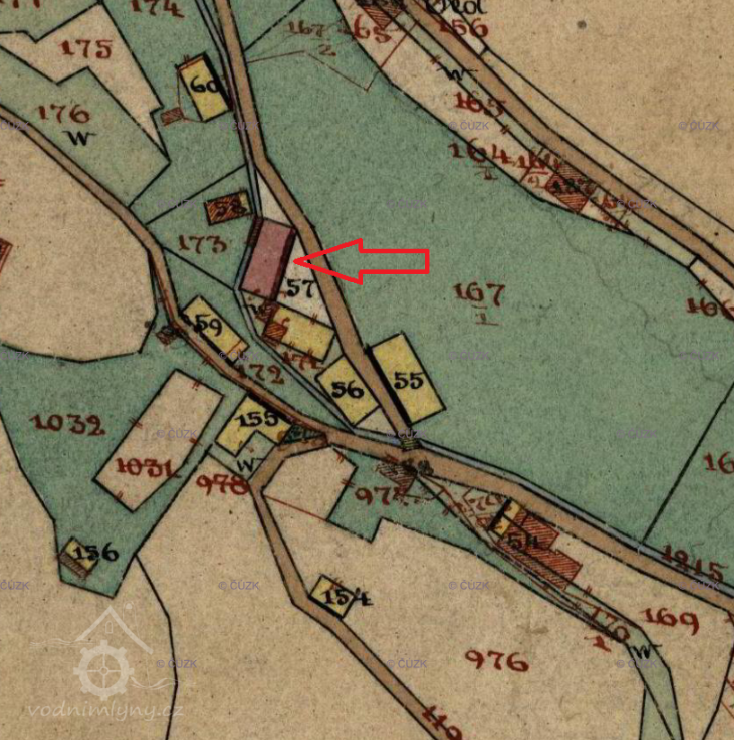 1930 majitel Antoní Jiroušek (v Seznamu chybně uvedeno Těchonín 28, na této adrese mlýn nikdy nebyl a ani být nemohl)