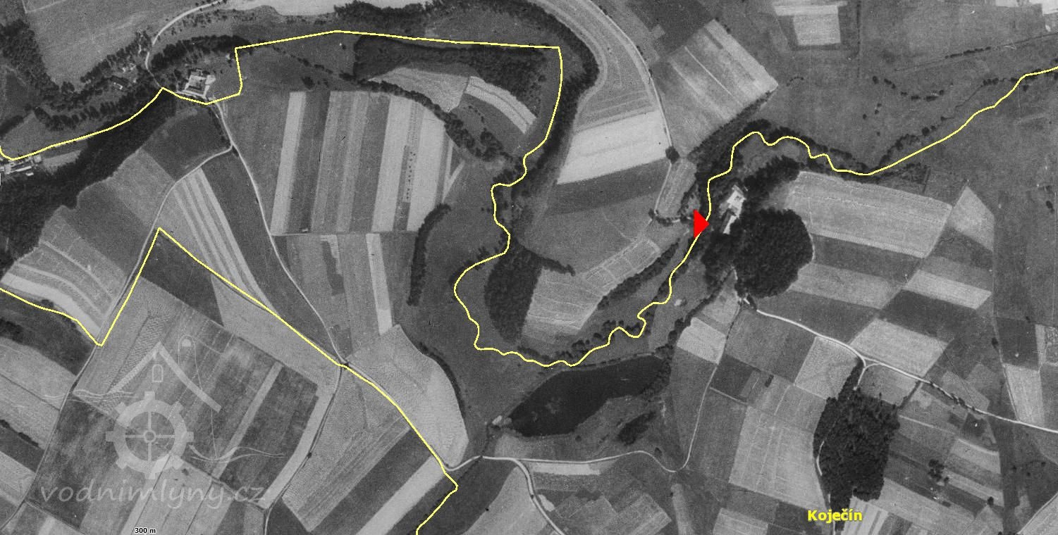 1. Mlynář Jiří Žák prodává: jim vlastněný koječínský mlýn, jak tento se nachází v dobrém stavu se 2 složeními a 4 stoupami, pak s veškerým příslušenstvím, vedle mlečů, vykázaných na konci tohoto kupního listu, jakož i specifikovaných polí a luk, totiž: jeden kus pole zvaný „Nad Babincem“, mezi panskými poli, ve výměře 6 jiter, 119 3/6 sáhů, jakož i hned pod ním druhé pole ve výměře 1 jitro 1085 sáhů, vedle bývalého pole ovčákova až k „Rákosovému rybníku“. Pak 3 kusy luk, totiž: „U Babince“, ve výměře 1 jitro sáhů a pod „Rákosovým rybníkem“ ve výměře 585 sáhů, posléze 2 jitra 40 sáhů březové houštiny