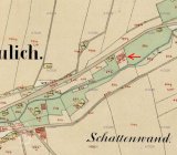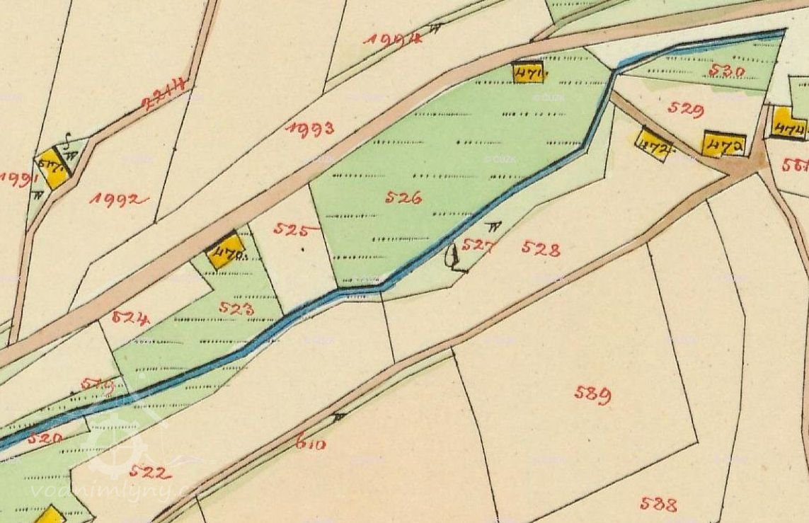 Na císařském otisku z r. 1839 ještě není mlýn zakreslen. Na indikační skice je dokreslen později.