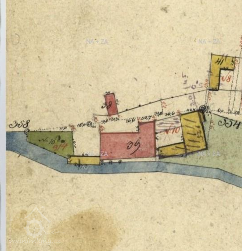 Voda šla od jezu na Bezdrvském potoce poměrně širokým korytem mlýnského náhonu až turbínovému domku. Před domkem je stavidlo do jalové strouihy a česla se stavidlem na vpouštění vody do turbínové kašny a na turbínu