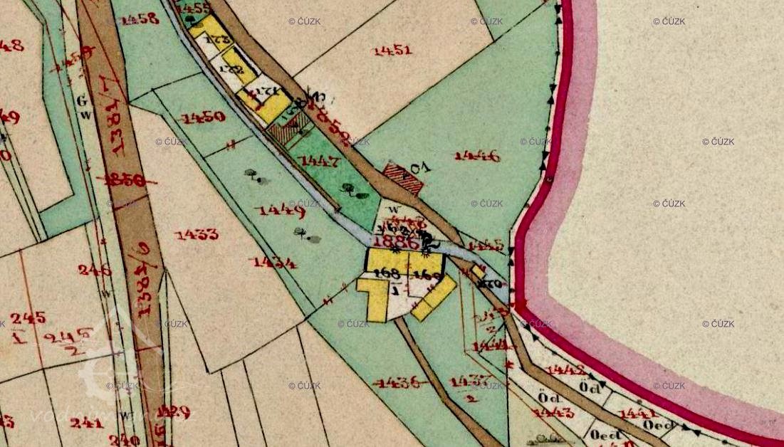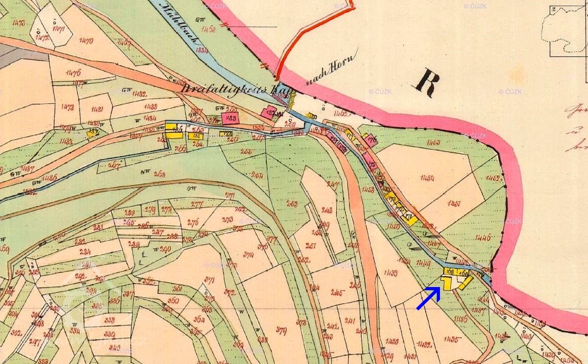 Zaniklý mlýn u města Oloví (Bleistadt).
