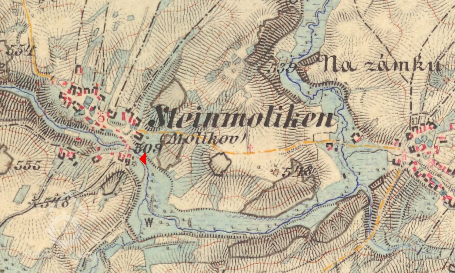 v r. 1512 zvaný Český Malíkov již stál a bylo tu asi 15 usedlíků... mlynář Kunda;