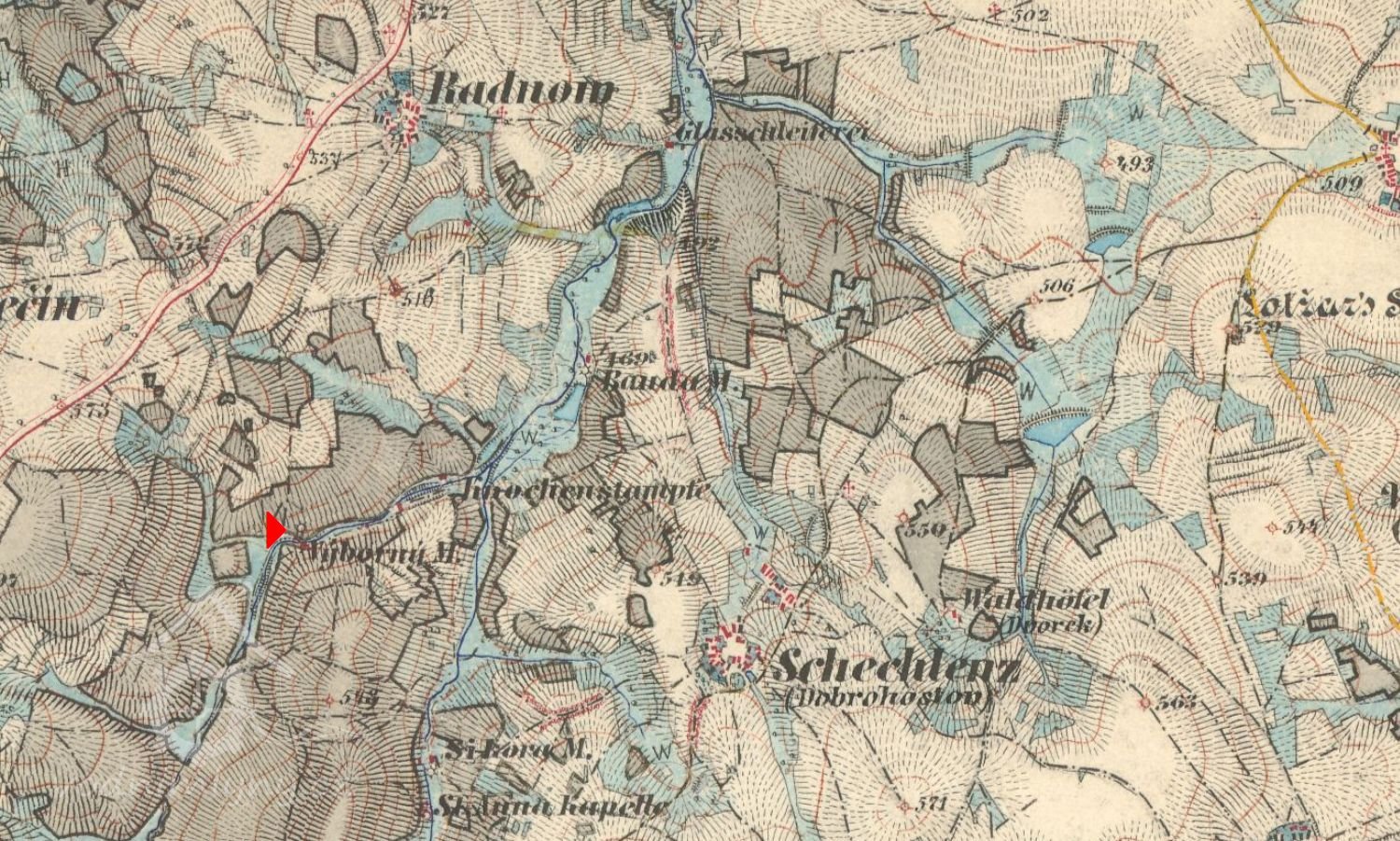 Areál mlýna z roku 1871, přestavěného v letech 1905 a 1924 se nachází na Nohavickém potoce, pod tratí SZ od Dobrohostova.