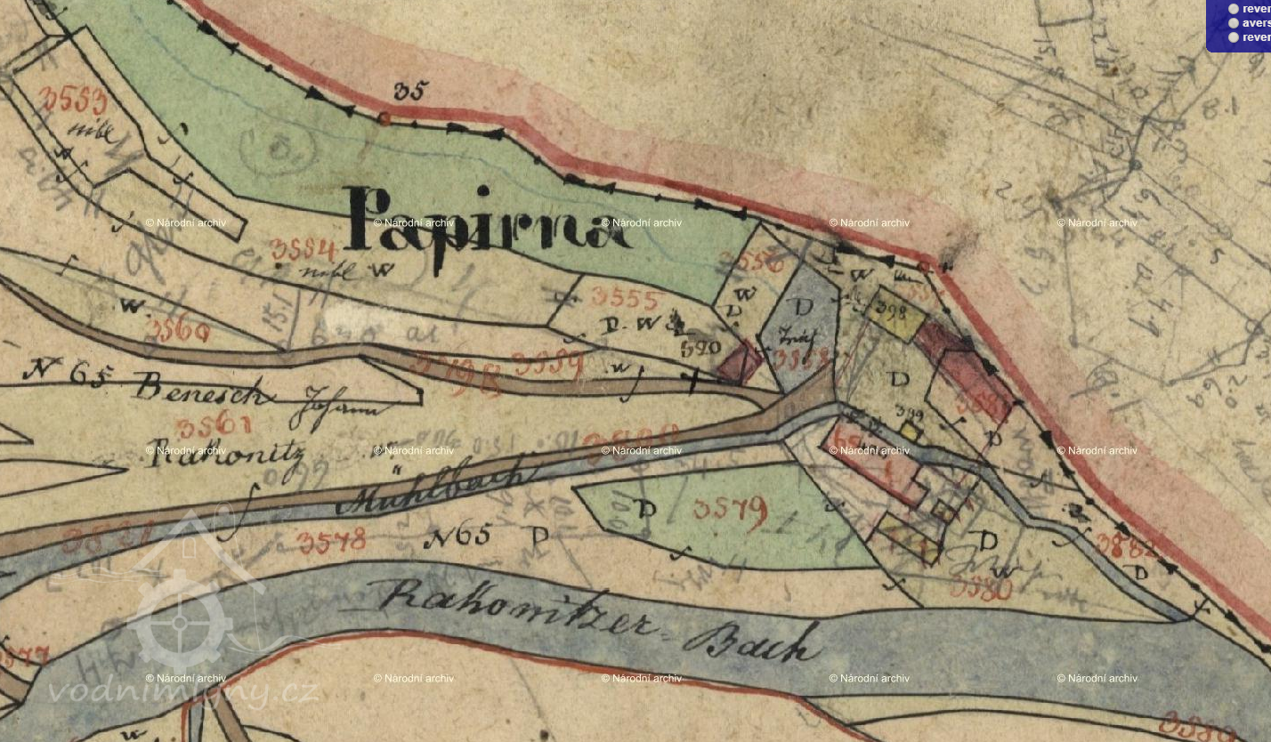1539 Dania opět vrací mlýn Václavu Šejdíři, u mlýna uvedena pila