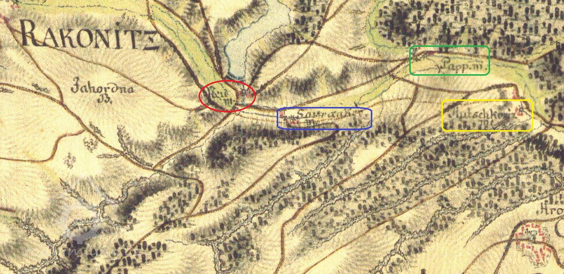 1535, v pátek po přenesení sv. Václava (5. března) Jiří Sklenář dal Daniovi dobrovolně a s dobrým rozmyslem louky v "v hutěch, kteréž jsú pod Volfovým mlýnem" , aby ty louky byly k jeho mlýnu připojeny a nebyly prodány. Měl za ně on i nástupcové jeho lázeň dvakráte v roce chudým dáti topiti a při tom topení po věrteli chleba a piva mladého půl věrtele mezi ně rozdávati.