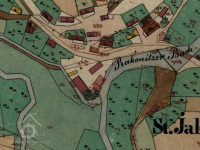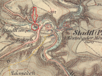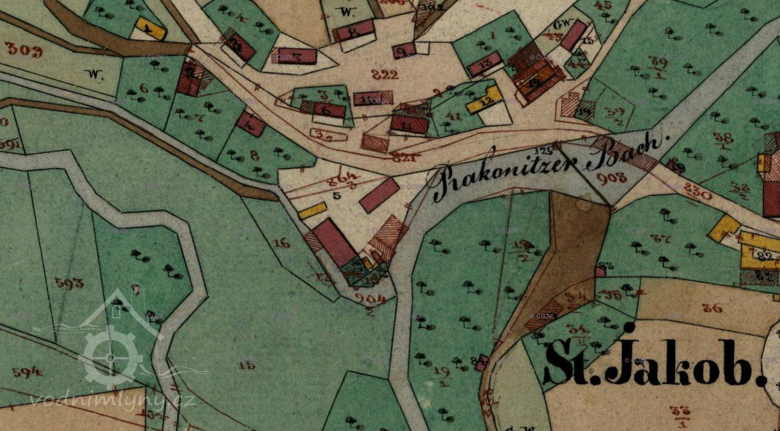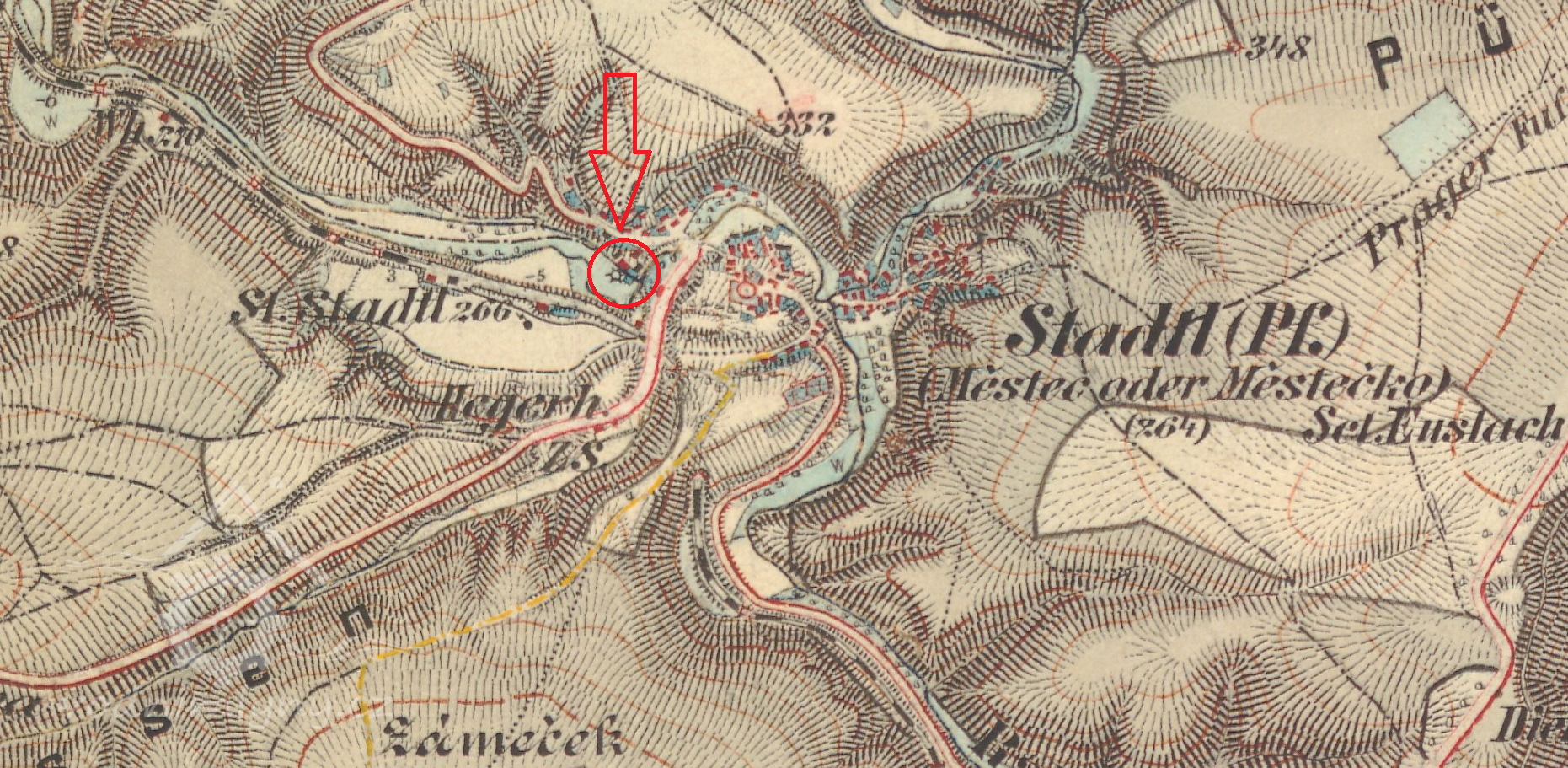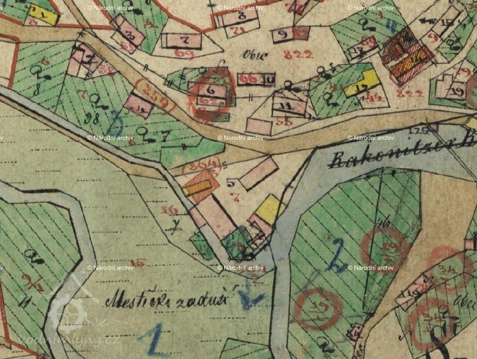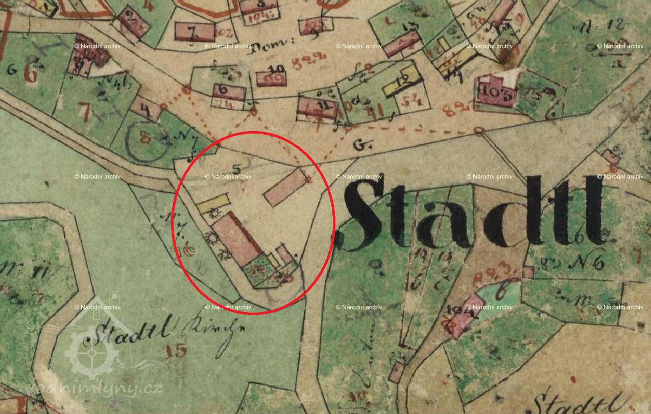 1706 selský mlýn s jedním složením, při něm pila, platí se z něho důchodu obilného žita 12 strychů, protože se mu toliko jedna vesnice, totiž Městečko, ve kterém 2 potažití a 17 chalupníků jest, s melivem zanechává. Peněžitého úroku z něho jest 1 zl. 51 kr. ročně. Item z téhož mlýna díl do důchodu, díl k záduší a ostatek sirotkům po 6 zl. ročně gruntovních peněz skládati se musí. Kontribucí, mimo kamerální, podle proporcí jinších sousedů měsíčně odváděti musí po 33, 45, 48 gr. též po 1 zl. i více. K tomu koná po příkladu jiných poddaných robotu potažitou, totiž každý týden 3 dny. Mlýn nemá svých dědičných orných polí, jen 1 a 1/2 věrtele, zarostlých žádných, luk též podobně. Polí zadušních užívá pod 14 strychů a luk pod 1 vůz sena a platí z nich k záduší, ať osíval či ne, každoročně 5 zl.