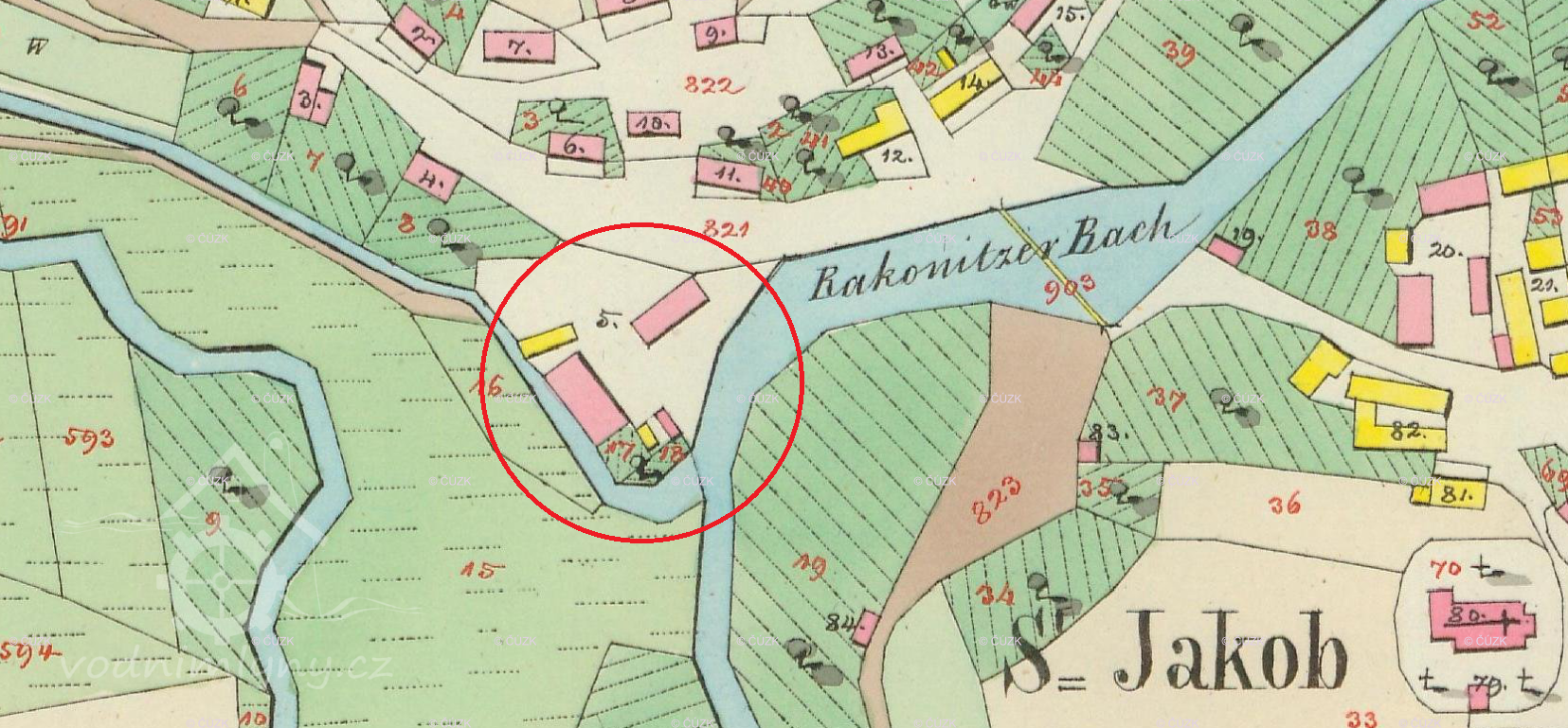 14.9.1789 zemřel v Městečku č. 7, tedy ve mlýně, Frantz Oeszr ve věku 80 let. (Tzn. byl mlynář, ale nebyl vlastníkem mlýna.)