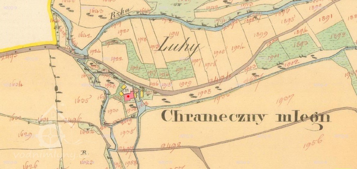 Mlýn stál v lokalitě Chrámečné u cesty z Vizovic do Bratřejova.