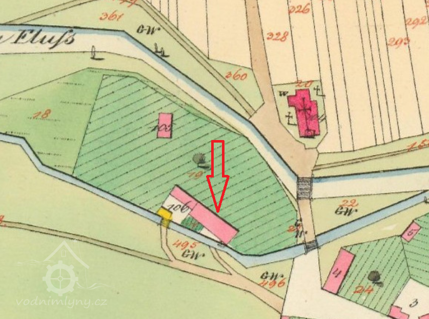 Popis1930: 1 kolo na svrchní vodu, hltnost 0,22 m3/s, spád 3,2 m, výkon 6,95 HP