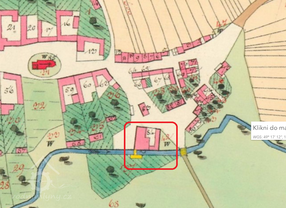 Na JZ okraji obce, první odbočka za kostelem vlevo, po 100 m vpravo mlýn