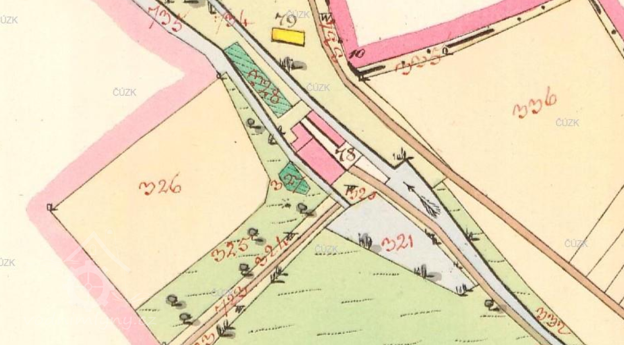 Podle staré katastrální mapy existoval mlýn již před polovinou 20. stol. Stodola postavená v 1. pol. 20. stol.