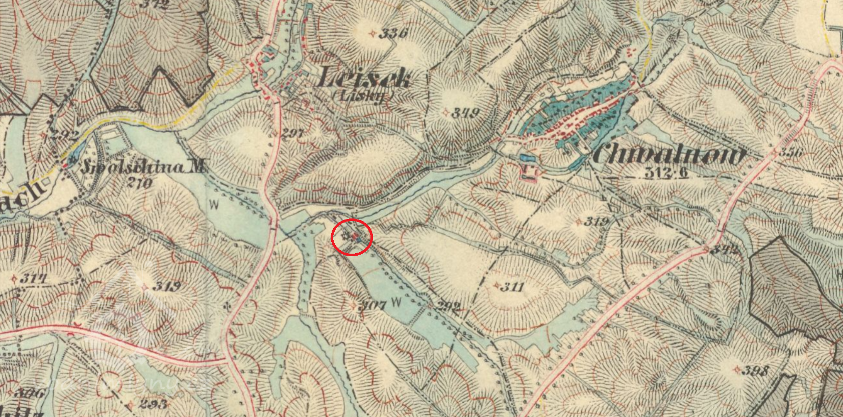 Starý mlýn v údolí Litavky u obce Chvalnov. Ve velké míře dochované technické vybavení. Mlýnice v patře domu, paralelně s mlýnem budova chlévů, v areálu stodola z neodmítnutých pálených cihel.