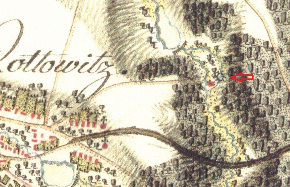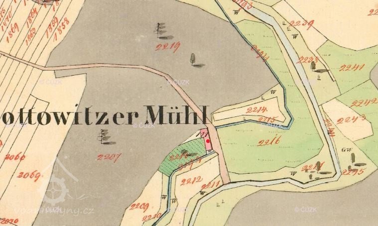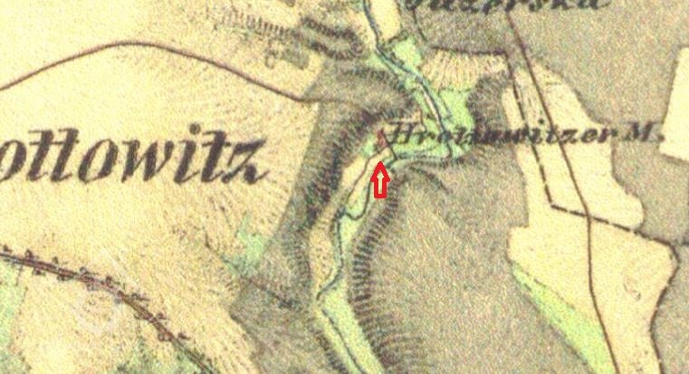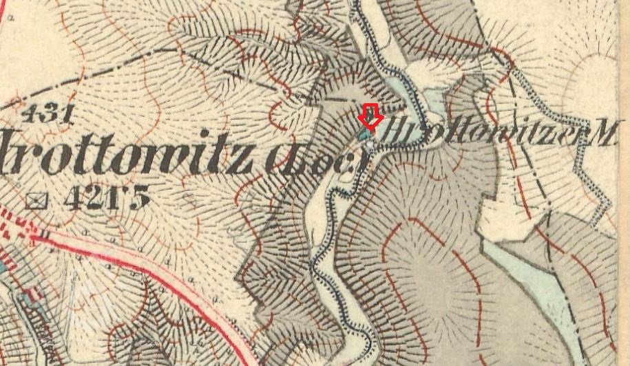 Mlýn dohledán na I. vojenském mapování. (JV)