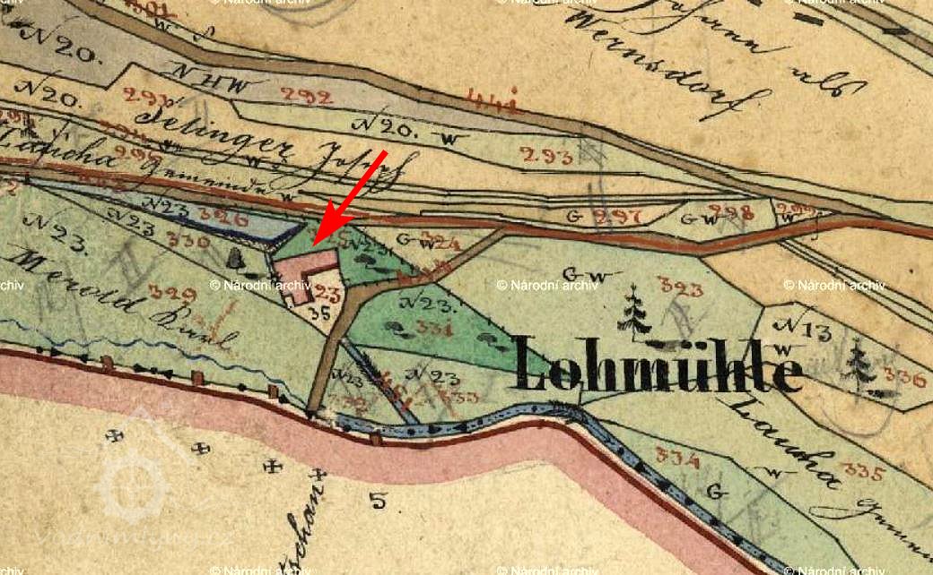 Na indikační skice stabilního katastru je k roku 1842 uveden jako majitel mlýna čp. 23 Karl Merold.