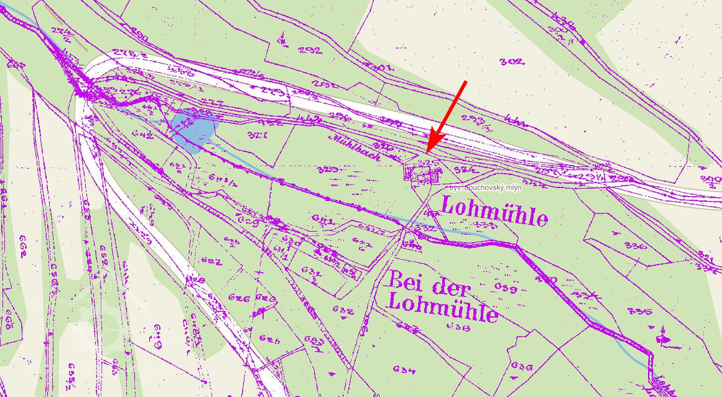 Dnes již zaniklý mlýn se nacházel nedaleko obce Louchov, na samotě za obcí.