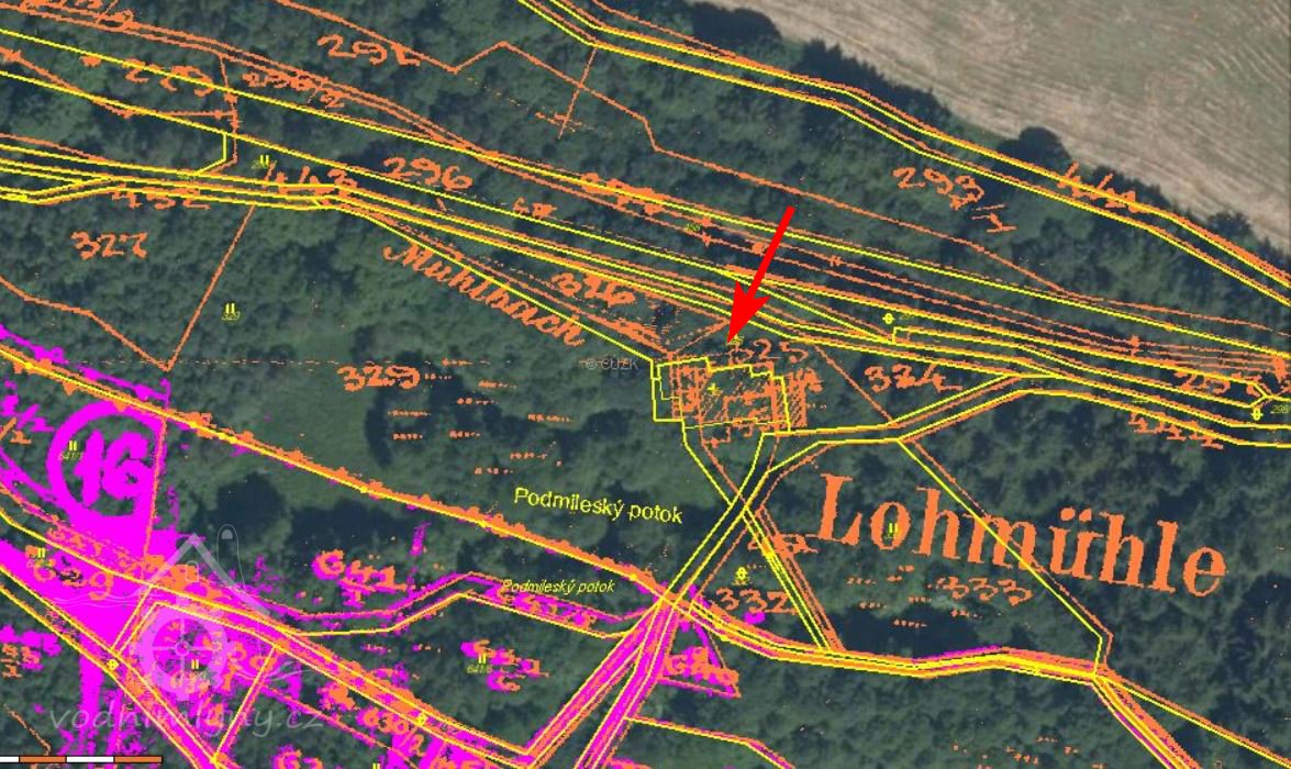 Mlýn se nacházel na samotě u Podmileského potoka, asi 600 m západně od kostela sv. Jakuba staršího.