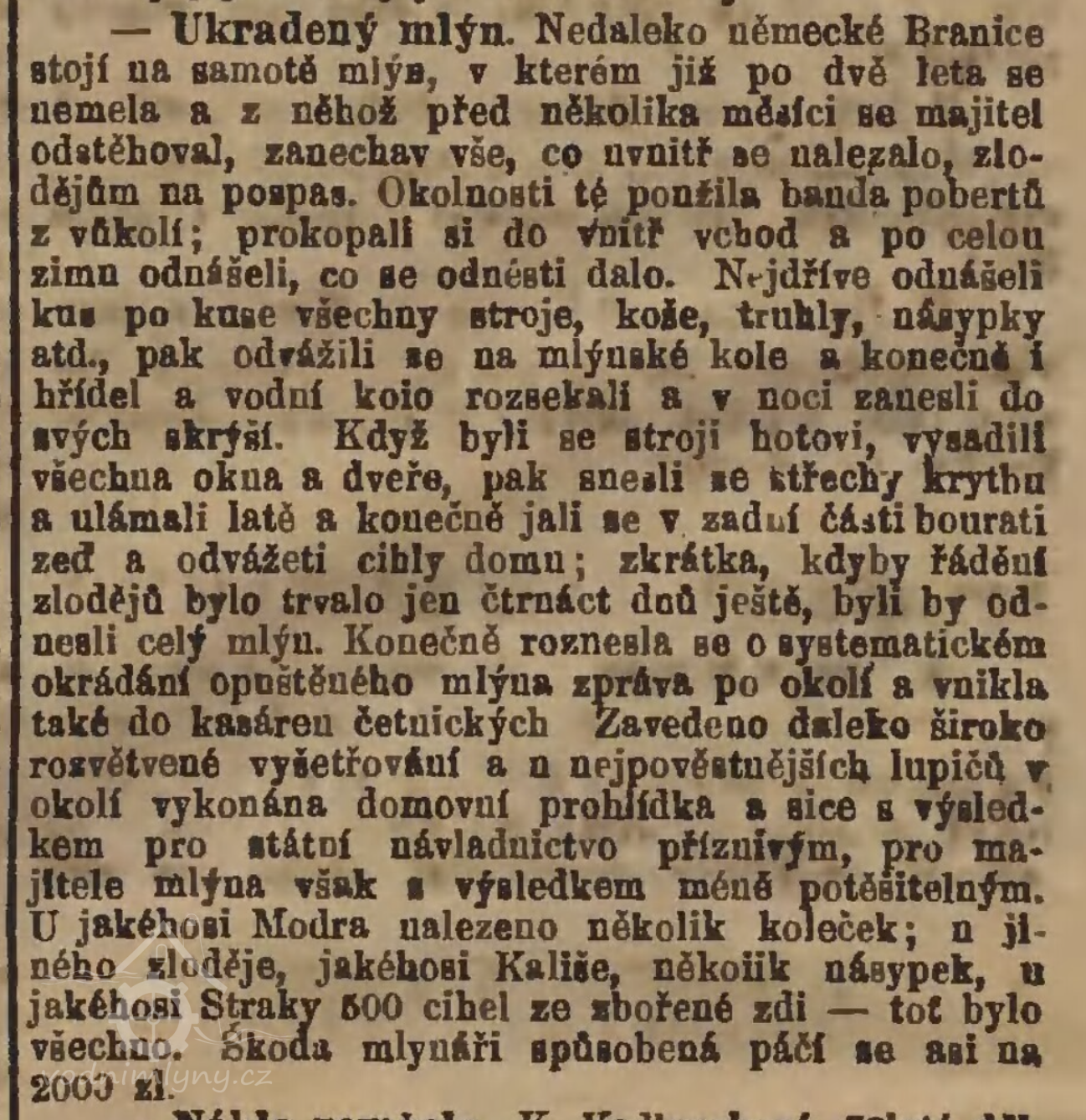 1880 - mlýn vykraden, viz ikonografie, zda je o tento mlýn není jisté