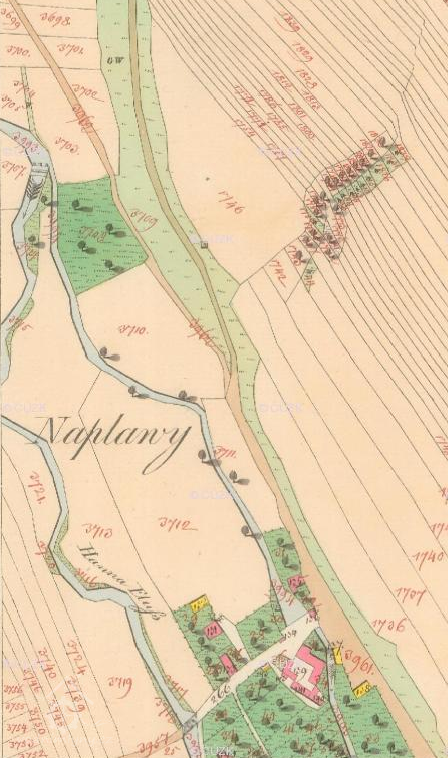 Náhon byl veden z Velké Hané a začínal asi 200-300 nade mlýnem. Pod mlýnem ústil zpět.