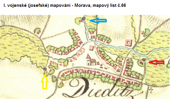 Na severním okraji obce, na rohu ulic Palackého a Morávkova, cca 600 m severozápadně od kostela.
