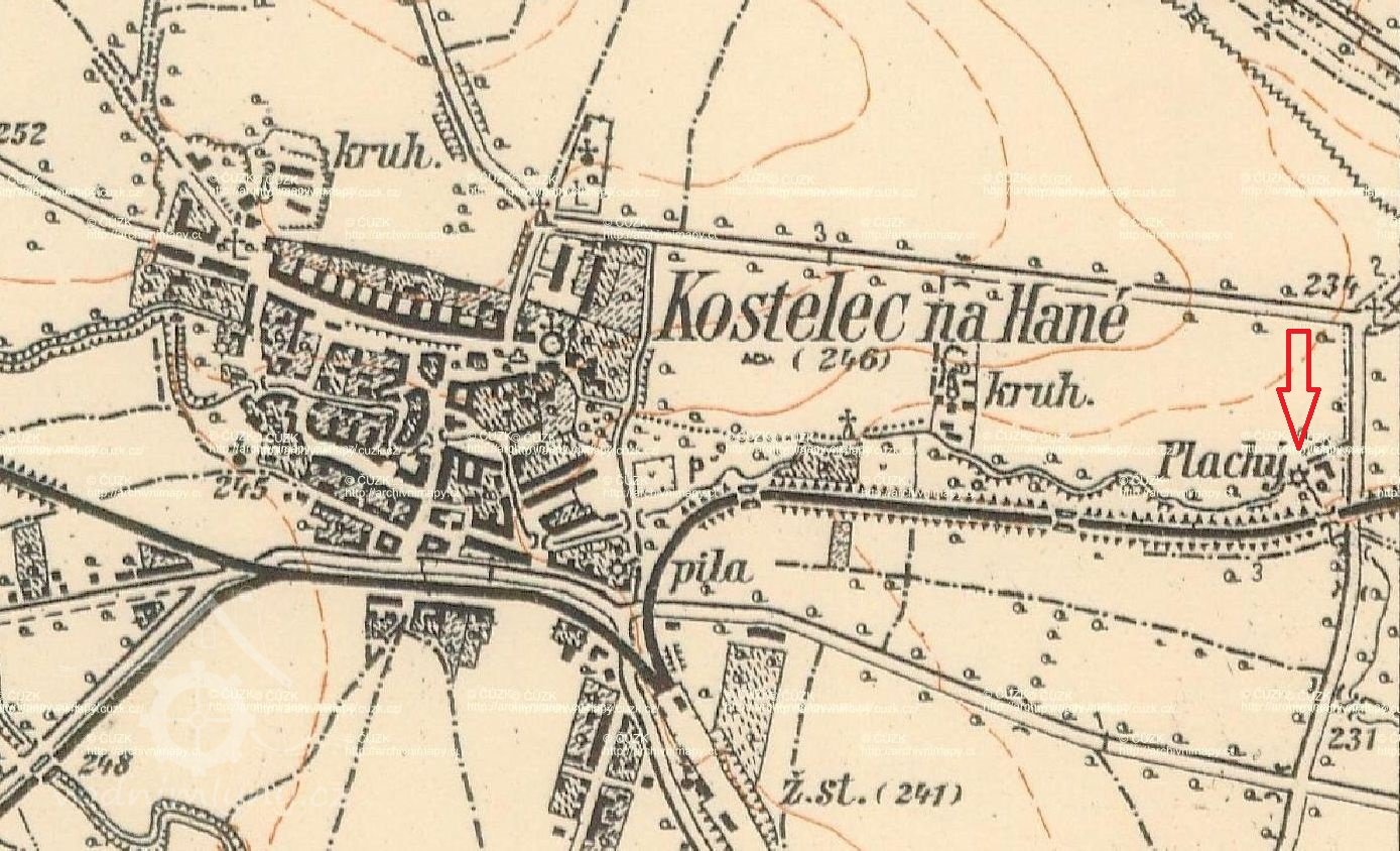 Plachý mlýn se nachází mezi městem Kostelcem na Hané a obcí Čelechovice na Hané při Mlýnské strouze směřující do Českého potoka. Tato samota v polích má bohatou historii, která směřuje až do raného středověku. Tehdy se mlýn nazýval Chudenský a měl spojitost s Čelechovicemi. Ves bývala zeměpanským majetkem českých králů a z r. 1315 máme písemnou zmínku, že král Jan Lucemburský dal za 100 hřiven grošů do zástavy Fridušovi z Linavy sedm lánů Čelechovických a Chudenský mlýn.