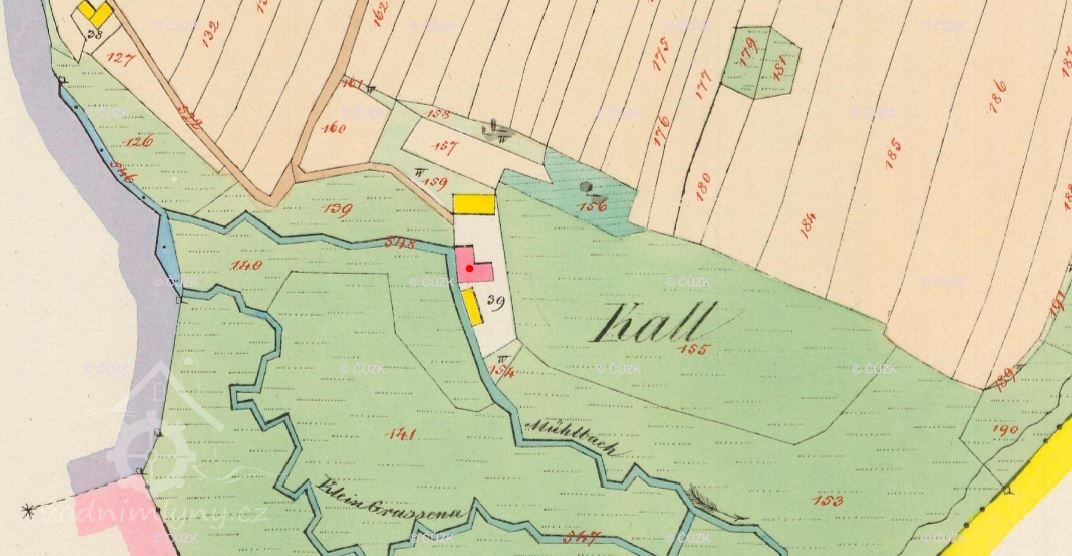 u mlýna 9 ha polí, 6 ha luk, 1 pár koní, 16 ks hov. dobytka, 11 prasat
