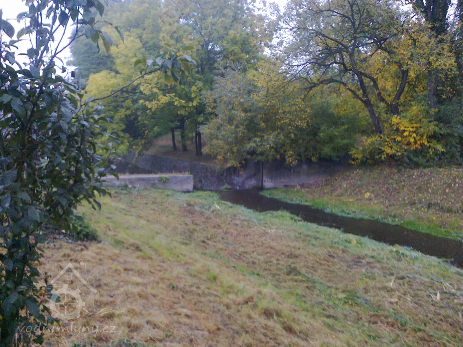 Mlýnský náhon začínal na ulici Morávkova, jak je most přes Hanou je vidět jez se dvěma stavidly. Tato stavidla zastavila vodu pro potřeby mletí. V těchto místech jsou topoly (z mostu Morávkova v pravo) v rohu těchto topolů je stavidlo, které pouštělo vodu na mlýn. Musíte se dívat pečlivě protože vše je zarostlé.