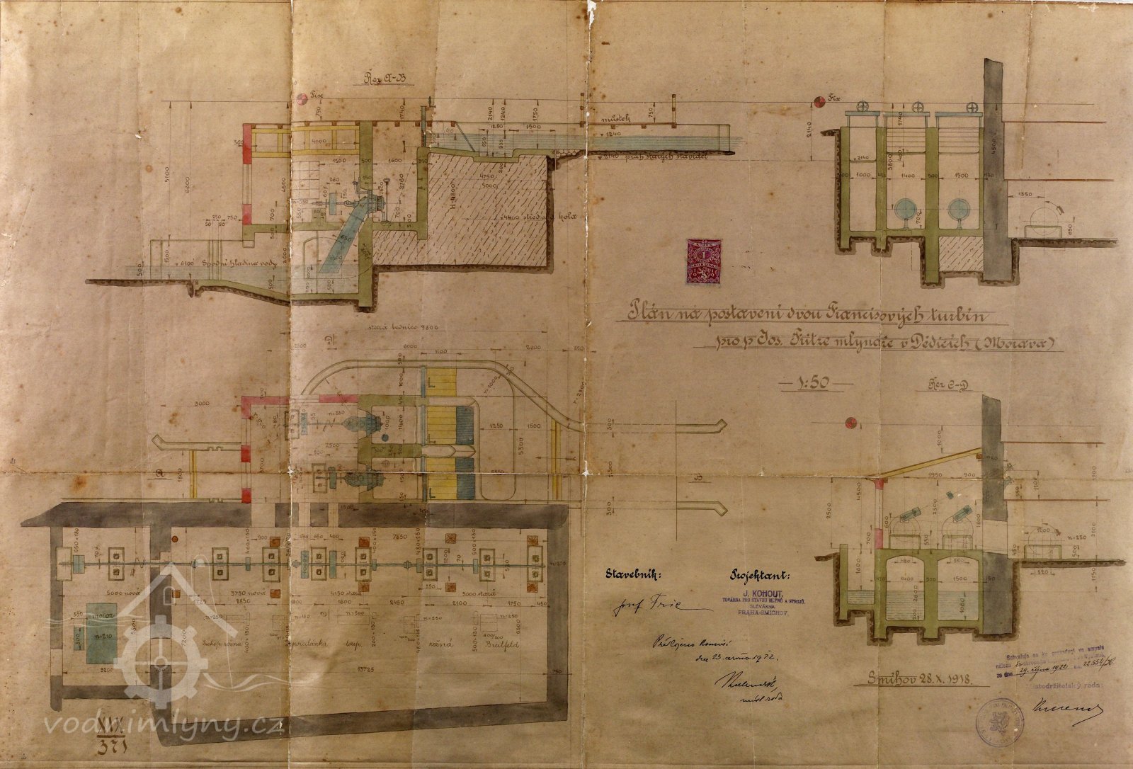 1) hltnost 0,265 m3/s, spád 4,8 m, výkon 12,7 HP