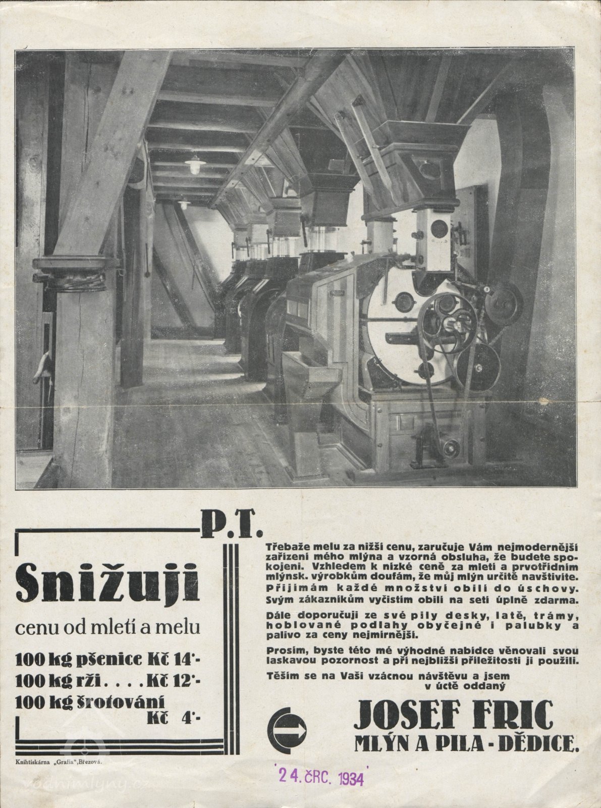 21. března 1930 mlýn vyhořel a byl rekonstruován do podoby, kterou má dnes. (RR)