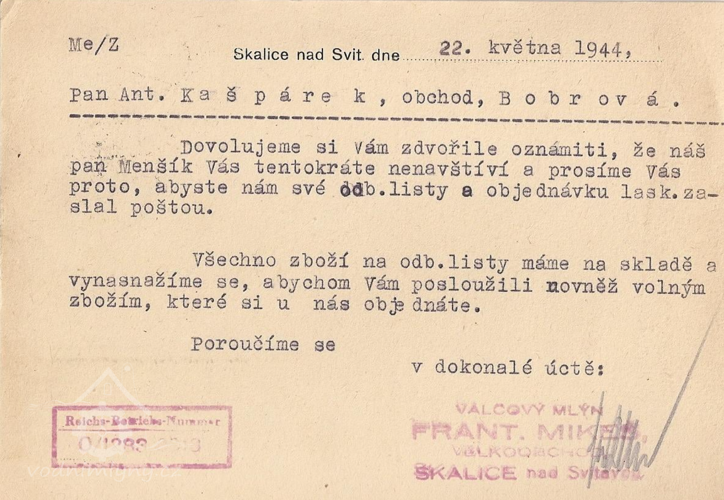 Starší zmínka je v místopise Boskovic. Např. v r. 1703 dne 8. aug. byl čten ortel několika vězňům, kteří ve skalickém mlýně vyrabovali Pavla Holáska.
