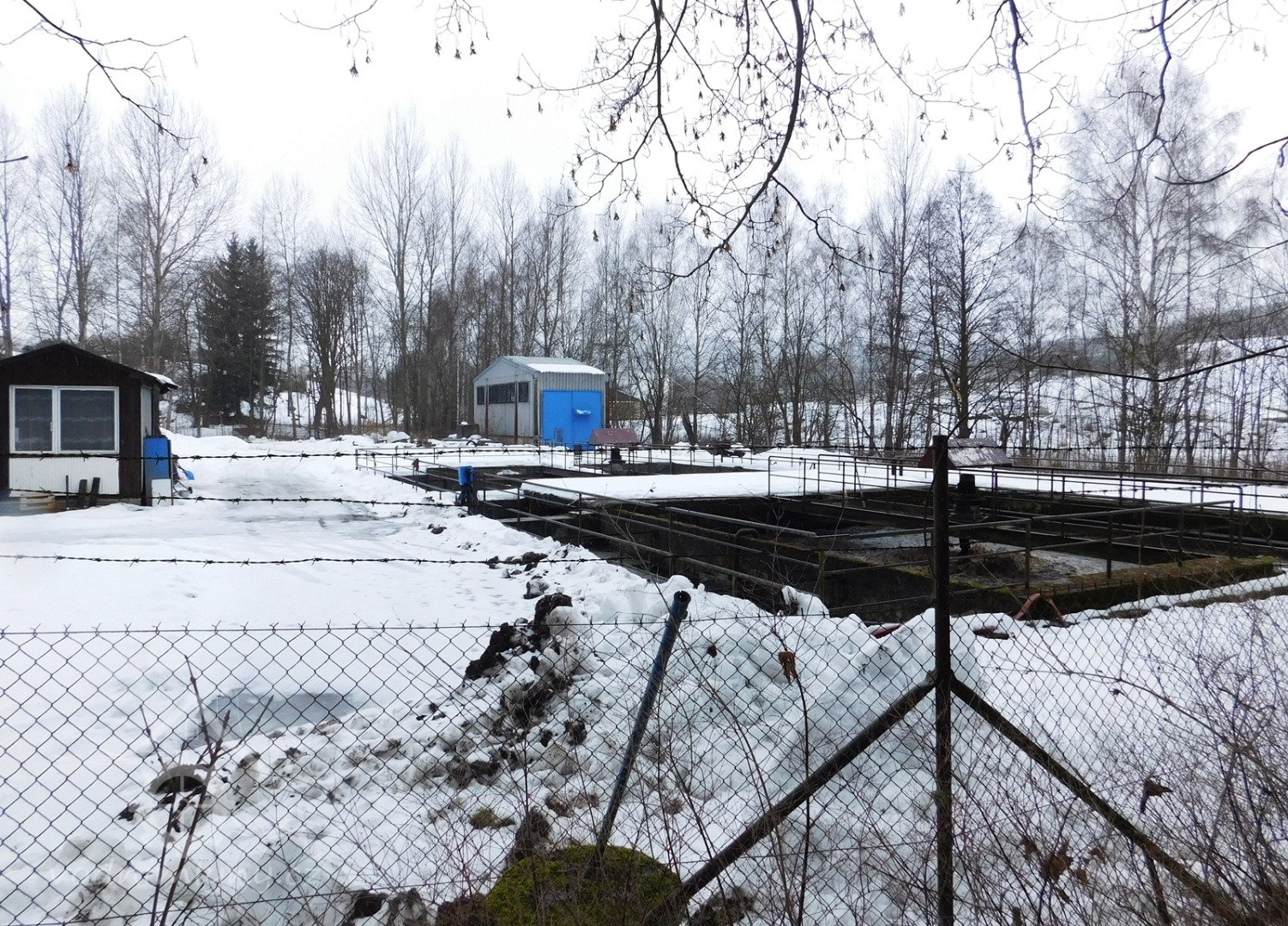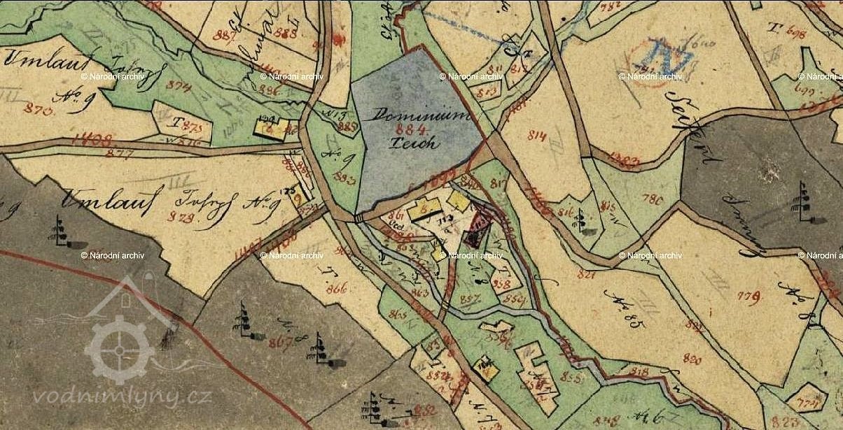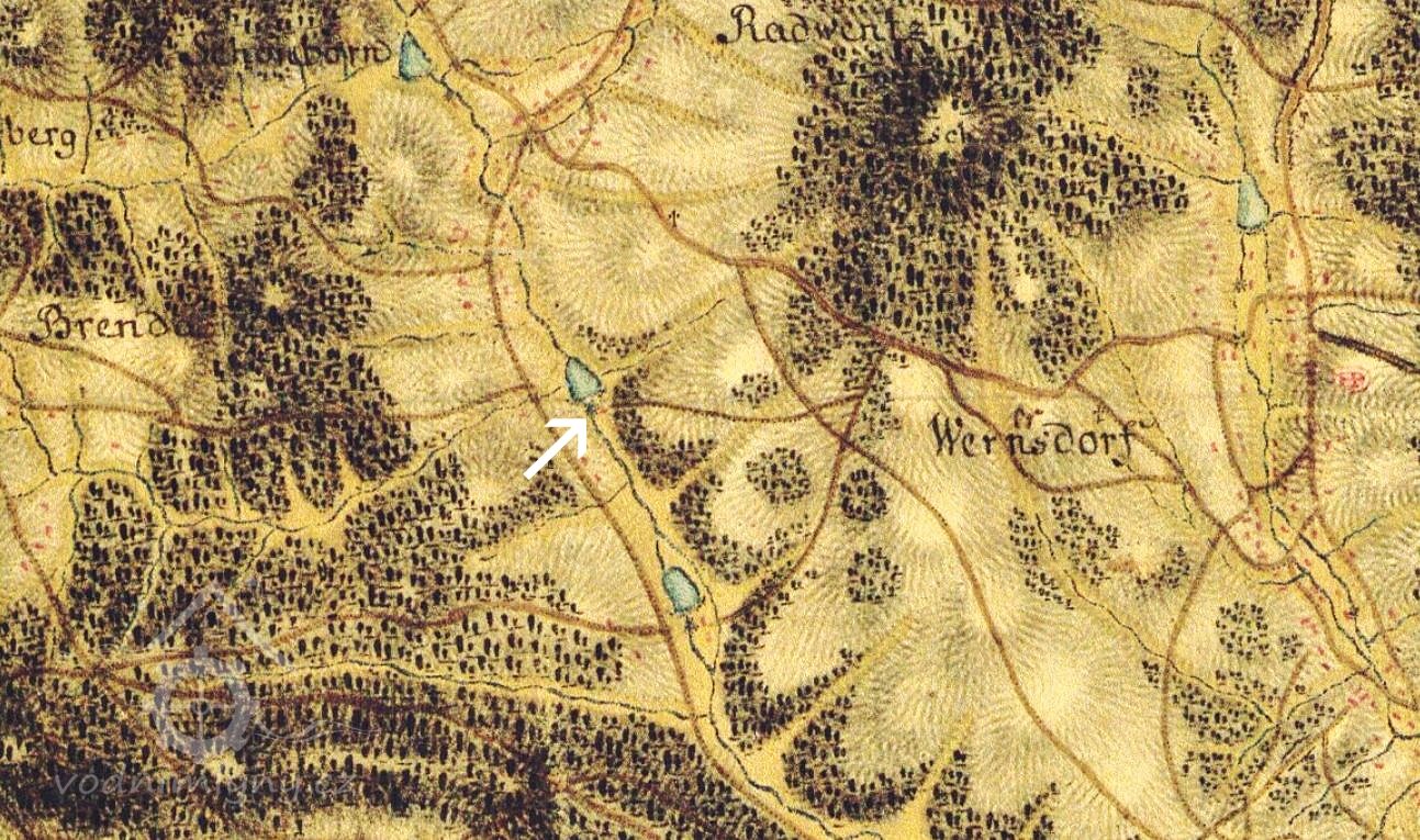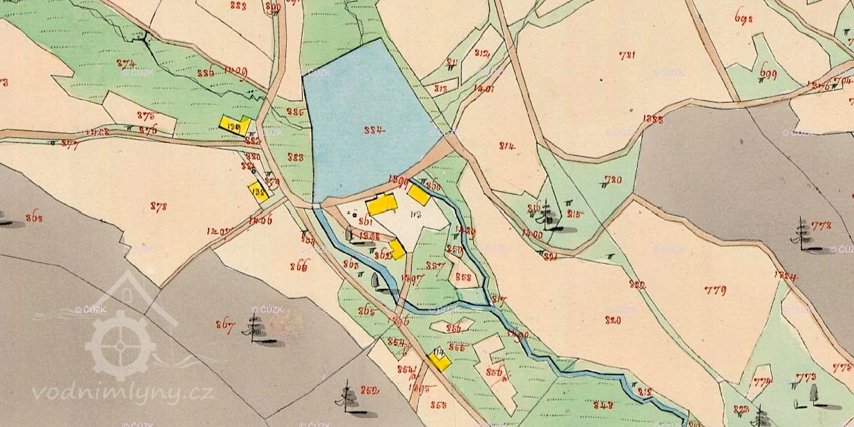 Zaniklý mlýn v intravilánu Radvanic. Namísto mlýnské nádrže se dnes nachází obecní ČOV.
