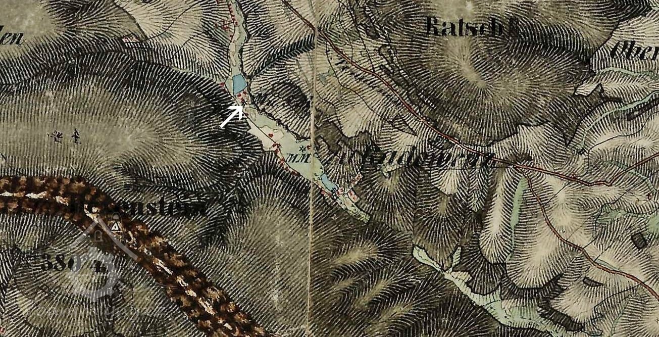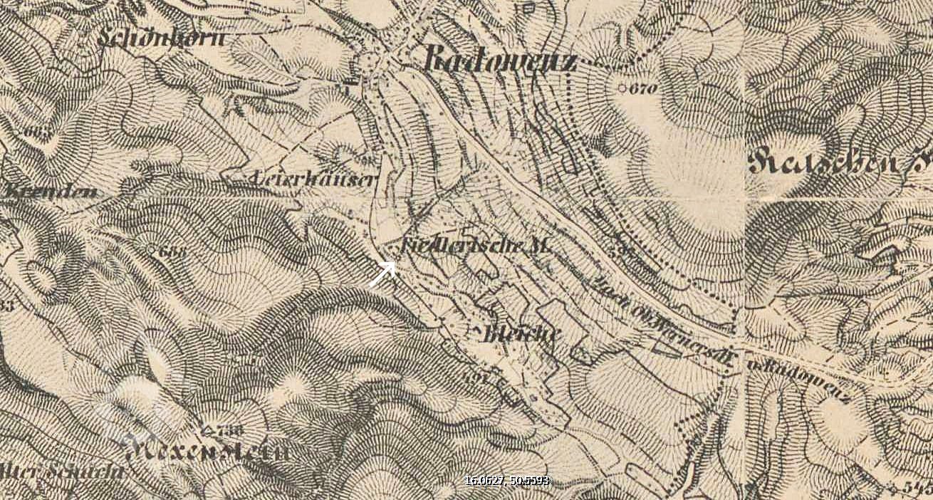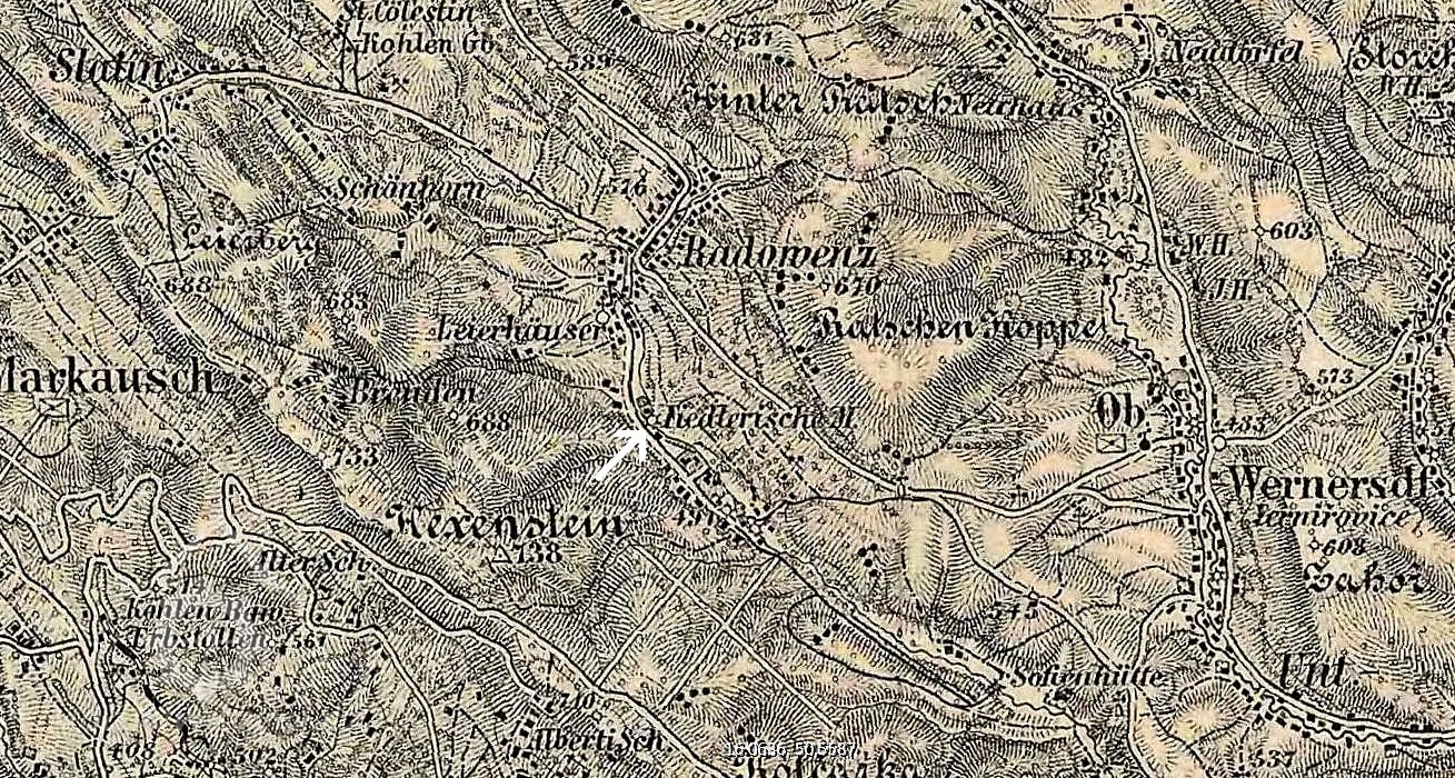 Zaniklý mlýn v intravilánu Radvanic. Namísto mlýnské nádrže se dnes nachází obecní ČOV.